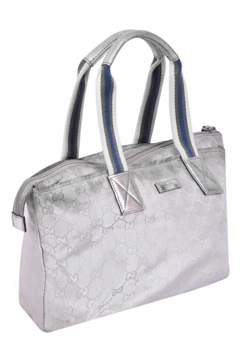Gucci GG Sherry Line Monogram Silver Canvas Bag comes in this Stunning Silver color .It falls under our Good Condition Category. No visible wear and tear or fading can be seen