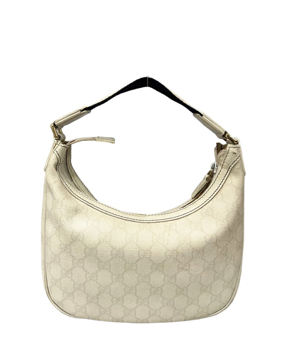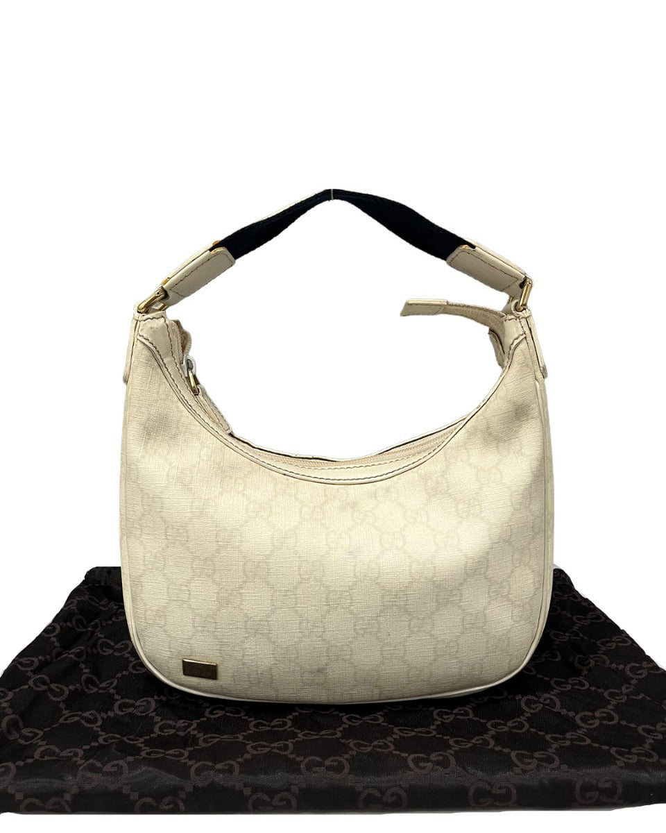 Gucci GG Supreme Hobo Handbag comes in this Stunning white color. It falls under our Pristine Condition Category. Visible wear and tear or fading can be seen.