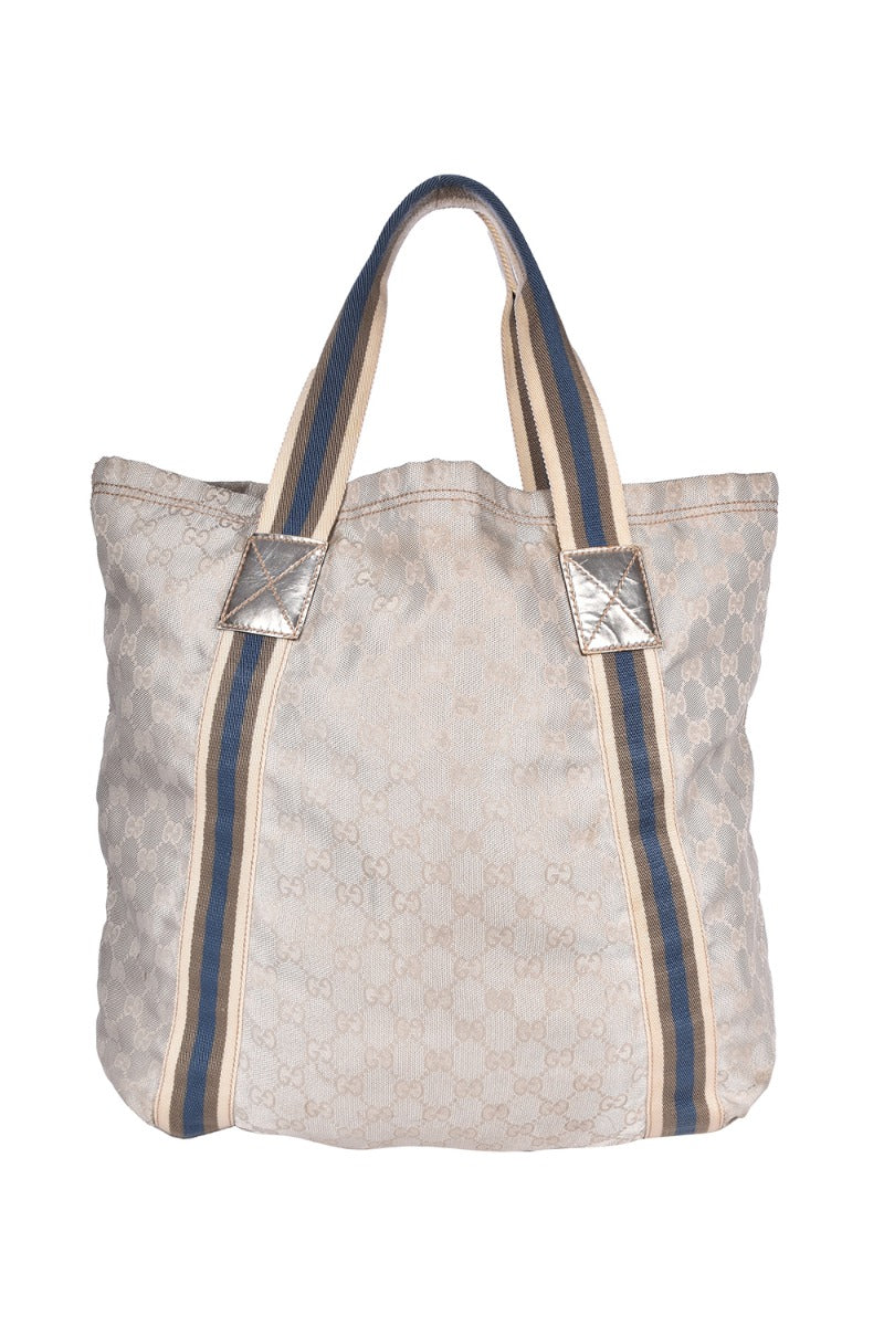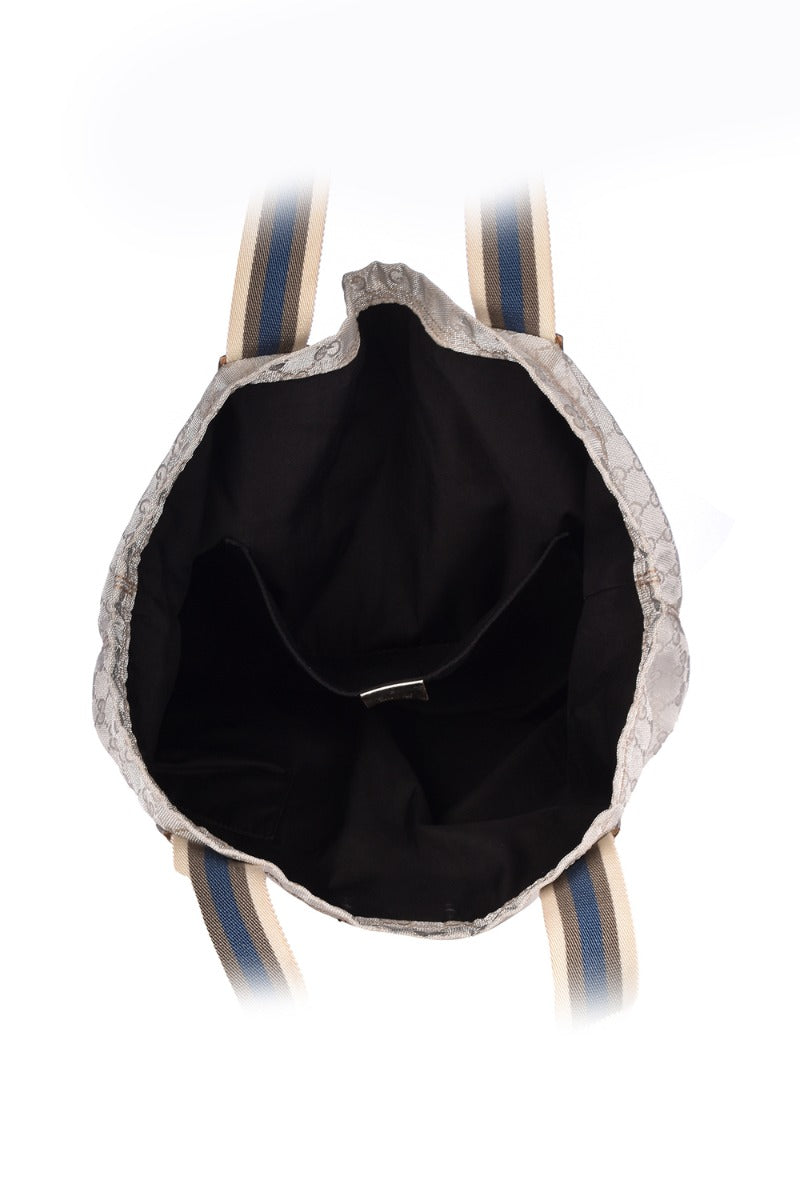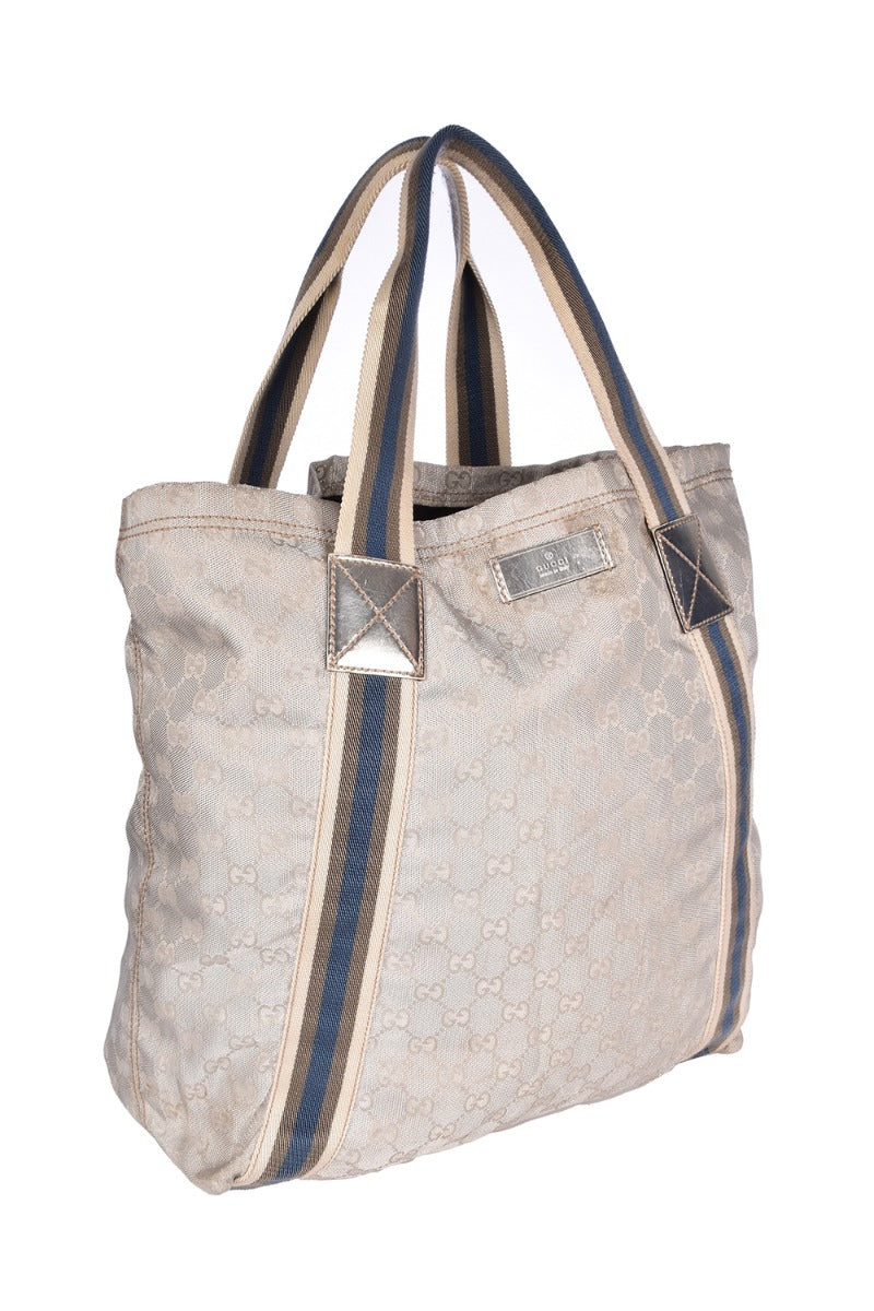 GUCCI GG WEB TOTE BAG comes in this Stunning Silver color .It falls under our Pristine Condition Category. No visible wear and tear or fading can be seen