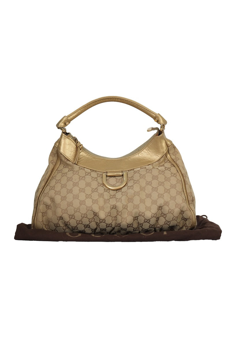 Gucci Golden D-ring Guccissima Handbag comes in this Stunning Golden color .It falls under our PRISTINE Condition Category. No visible wear and tear or fading can be seen.