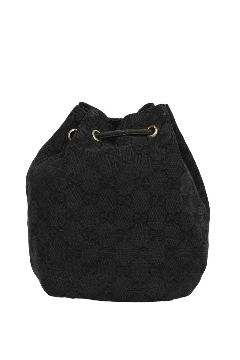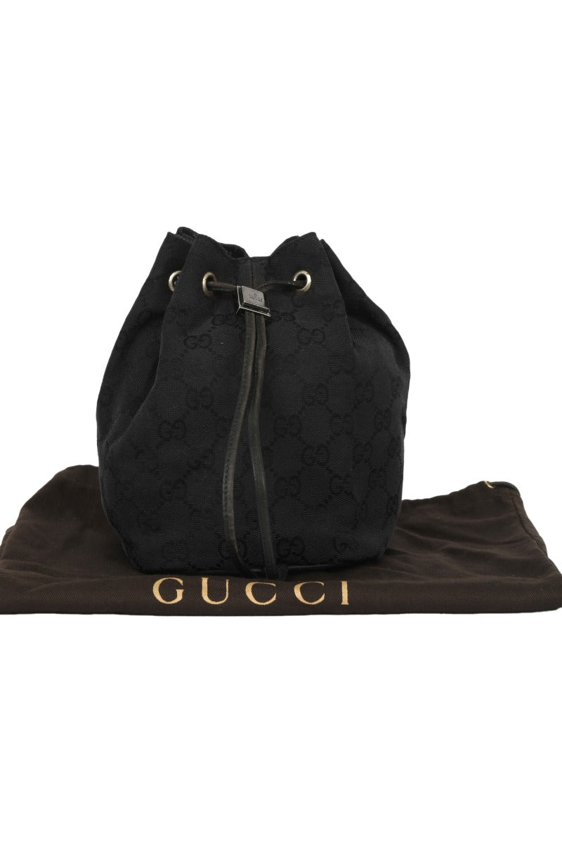 Gucci Guccissima Black Canvas Drawstring Small Handbag comes in this Stunning Black color .It falls under our PRISTINE Condition Category. No visible wear and tear or fading can be seen.