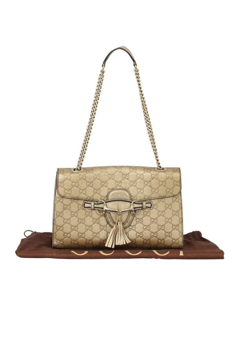 GUCCI GUCCISSIMA EMILY MEDIUM LEATHER SHOULDER BAG comes in this Stunning Goldencolor .It falls under our pristine Condition Category.
