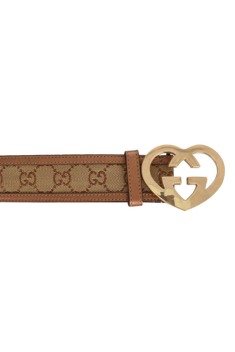GUCCI HEART SHAPED INTERLOCKING GG BUCKLE BELT Comes in this stunning Bronze color. It falls under our Good Condition Category. No visible wear and tear or fading can be seen.