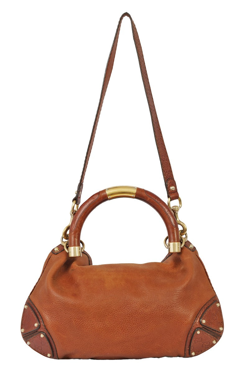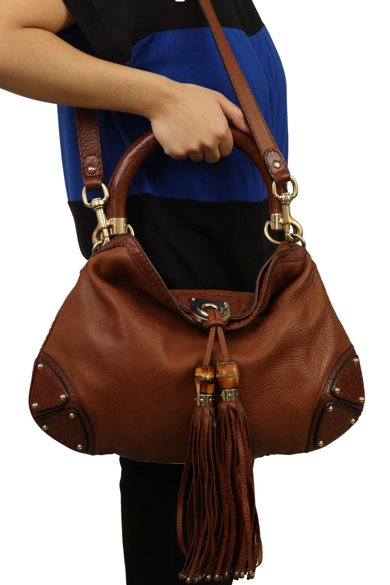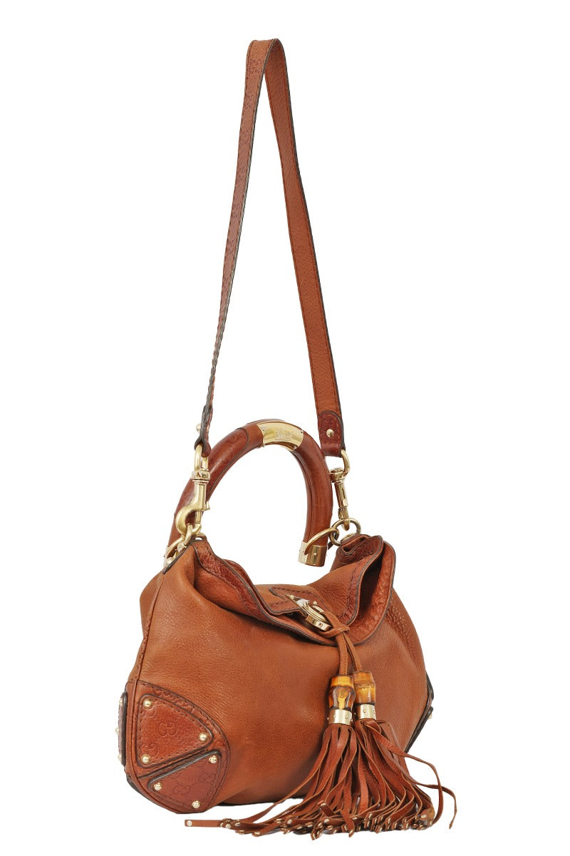 GUCCI LEATHER BABOUSKA INDY TOP HANDLE BAG comes in this Stunning Brown color .It falls under our Pristine Condition Category. No visible wear and tear or fading can be seen.