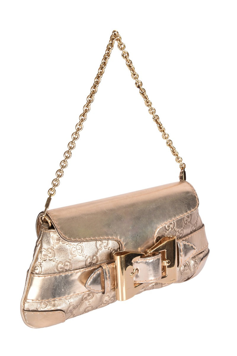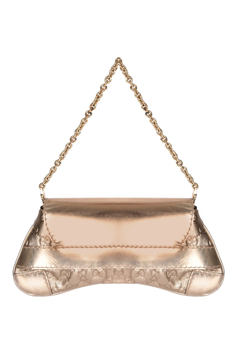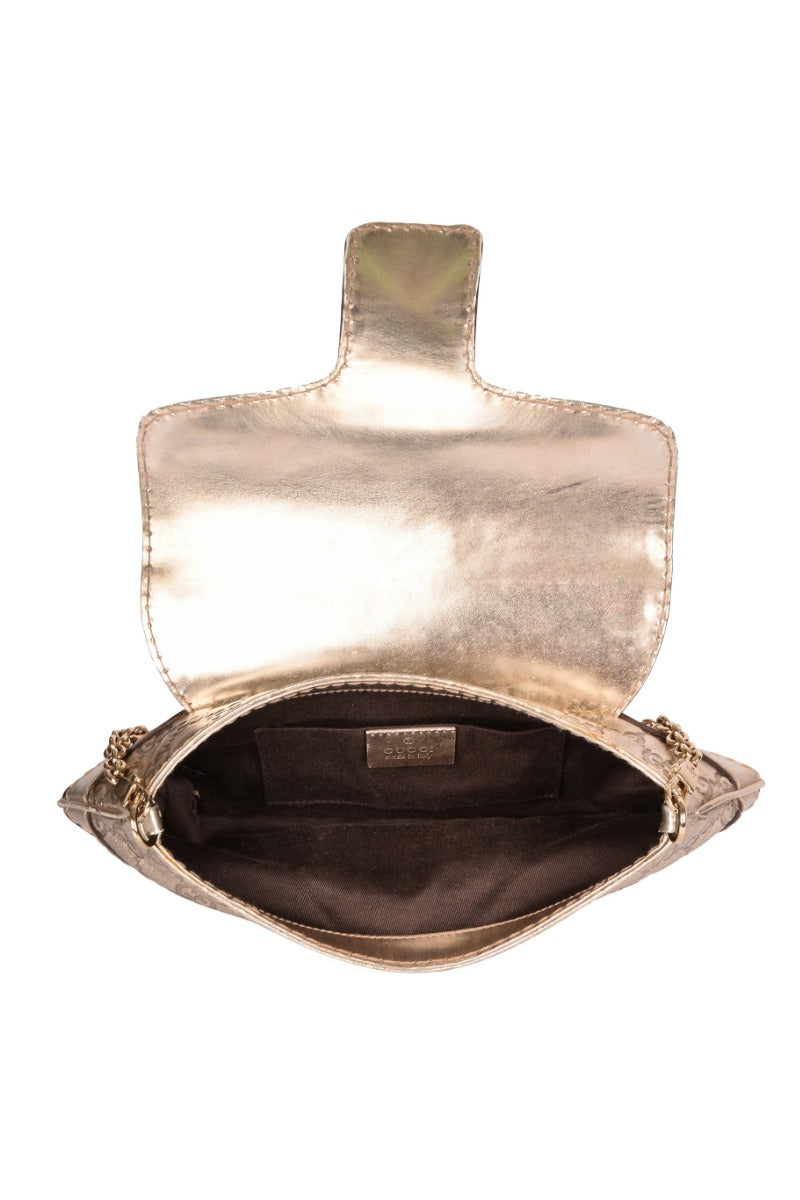 GUCCI LIMITED EDITION QUEEN BOW BUCKLE BAG comes in this Stunning Dull Gold color .It falls under our Pristine Condition Category. No visible wear and tear or fading can be seen.