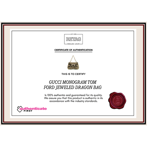 GUCCI MONOGRAM TOM FORD JEWELED DRAGON BAG comes in this Stunning Brown color .It falls under our Like New Condition Category. No visible wear & tear or fading can be seen.