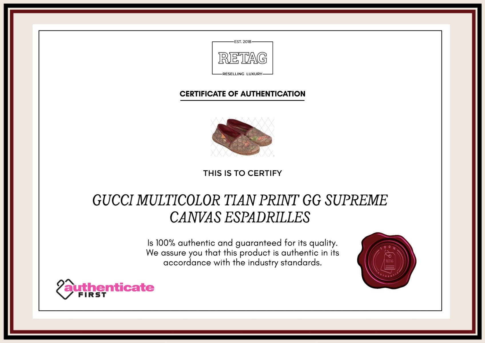 Gucci Multicolor Tian Print GG Supreme Canvas Espadrilles comes in this stunning Beige color. It falls under our Gently Used Condition Category.