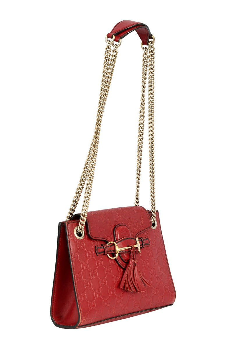 Gucci Red Small Guccissima Leather Emily Chain Shoulder Bag