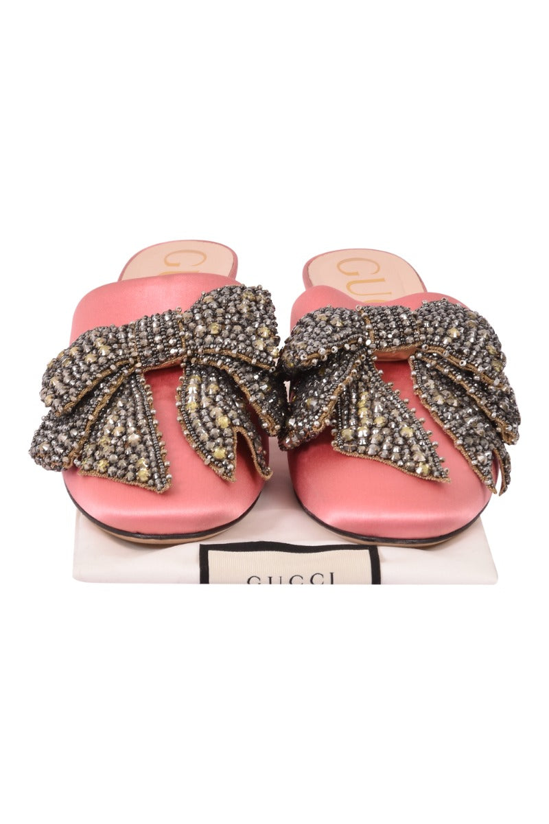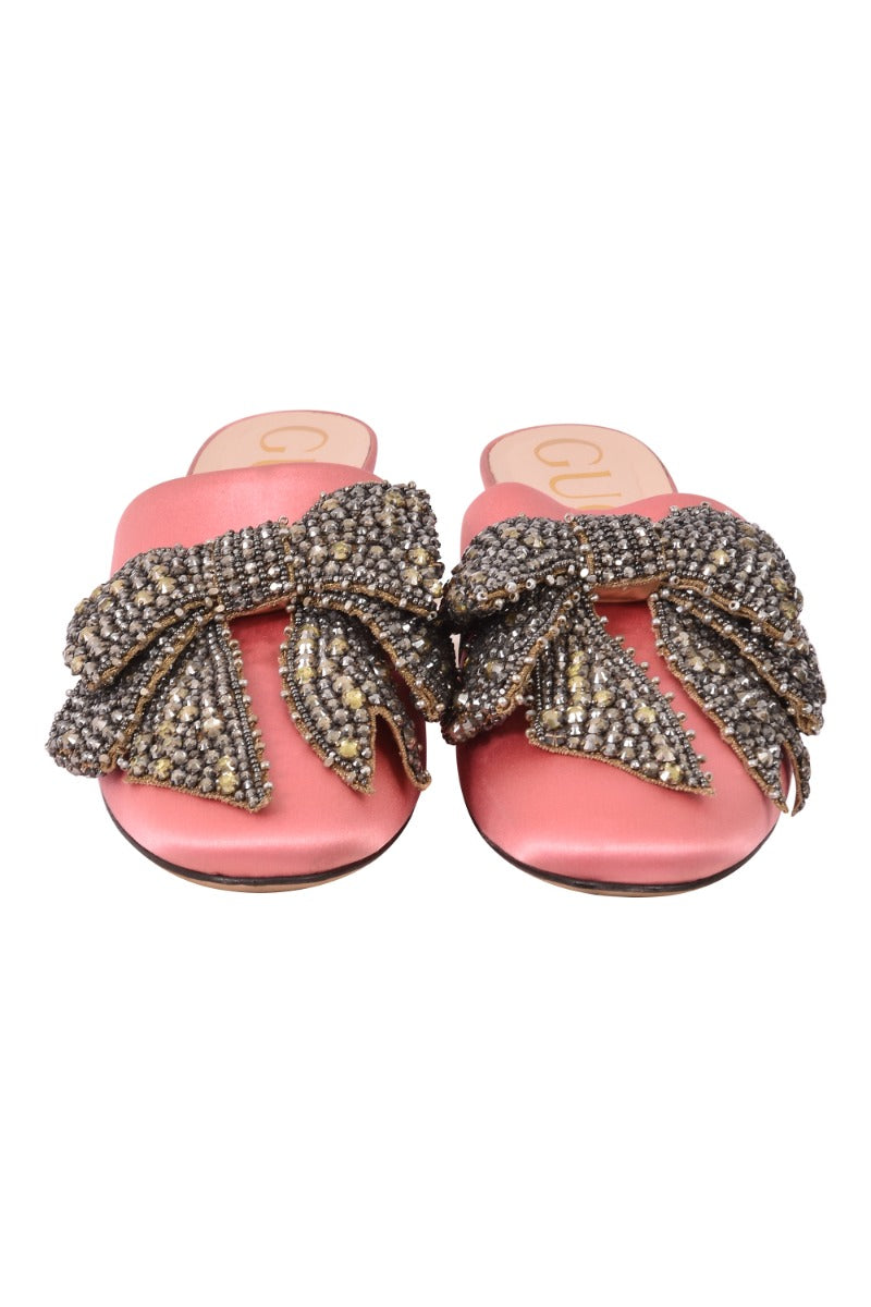 Gucci Satin Candy Bow Embellished Mules comes in this stunning Pink color. It falls under our Like New Condition Category. No visible wear and tear or fading can be seen