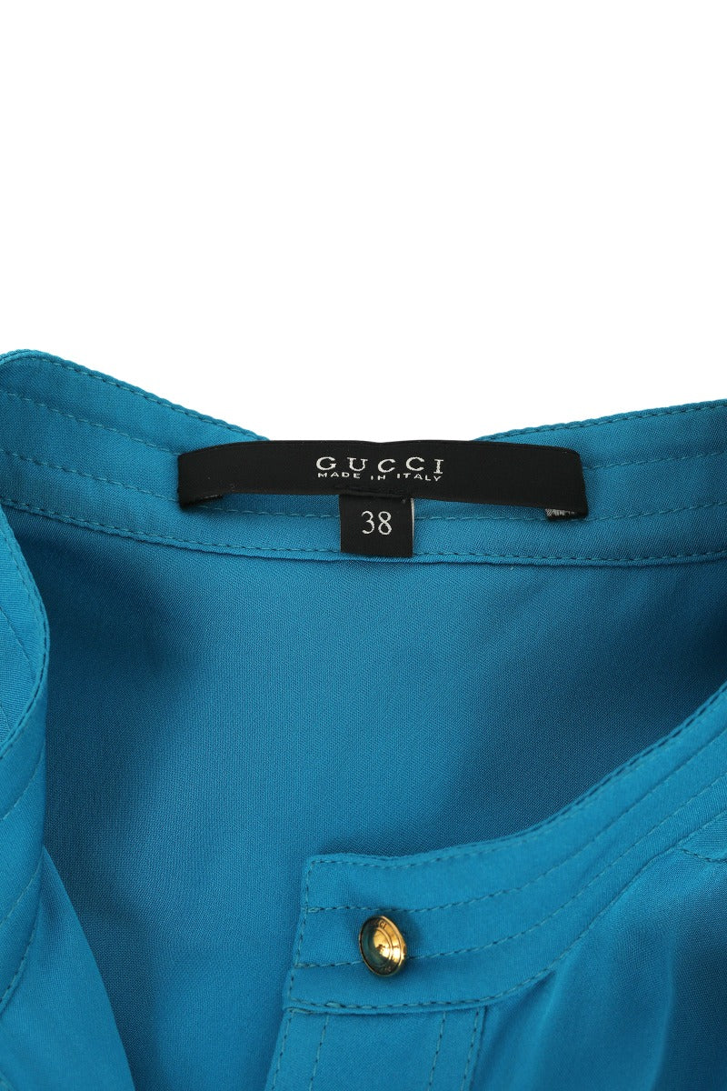 Gucci Size 38 Amelia Blue Silk Mandarin Collar Button Down Shirt comes in thisStunning Blue color. It falls under our Pristine Condition Category. No visible wear and tear or fading can be seen