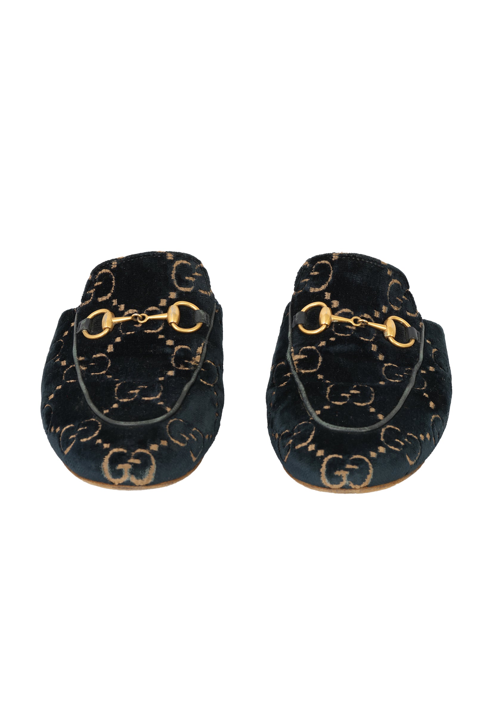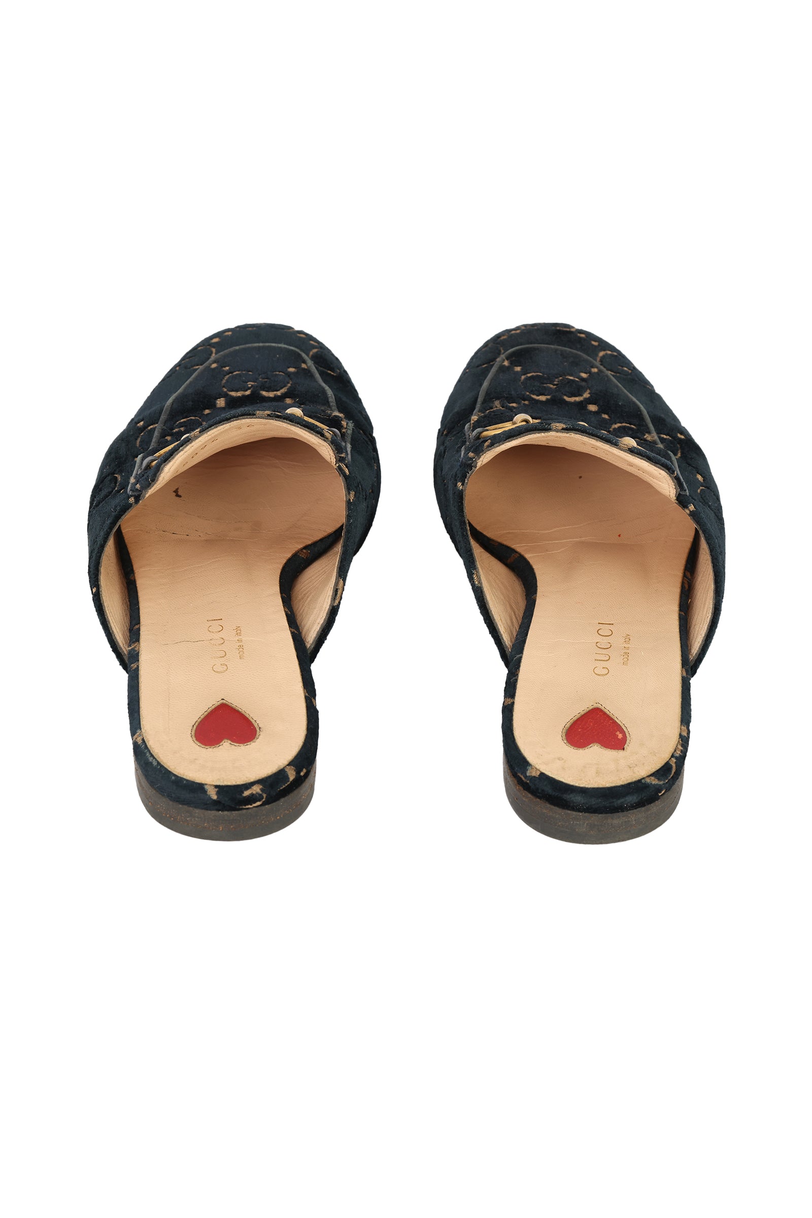 The Gucci Size EU 36.5 Princetown GG Velvet Mules come in a stunning teal colour and fall under our Pristine Condition category. No visible wear, tear, or fading can be seen.