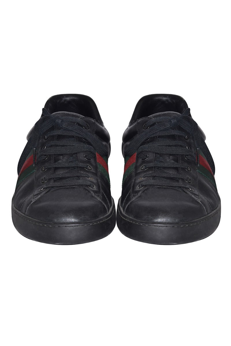 Gucci Web Lace Up Sneakers comes in this stunning Black color. It falls under our Pristine Condition Category. No visible wear and tear or fading can be seen