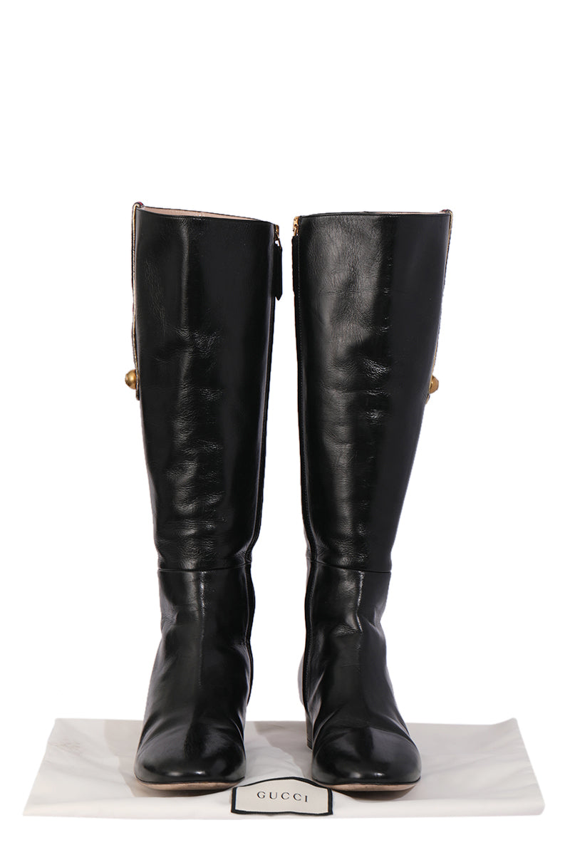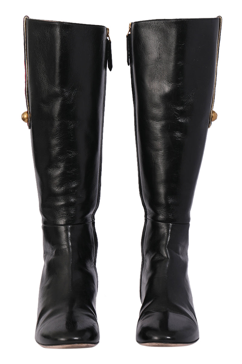 Gucci Wed Accent Leather Riding Boots comes in this stunning black color. It falls under our Pristine Condition Category. No visible wear and tear or fading can be seen