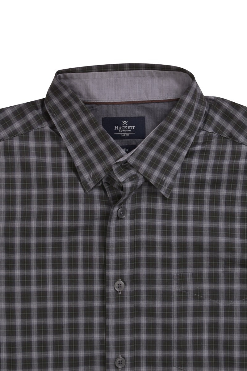 Hackett Stripe Shirt comes in this Stunning Gray color. It falls under our Pristine Condition Category. No visible wear and tear or fading can be seen.