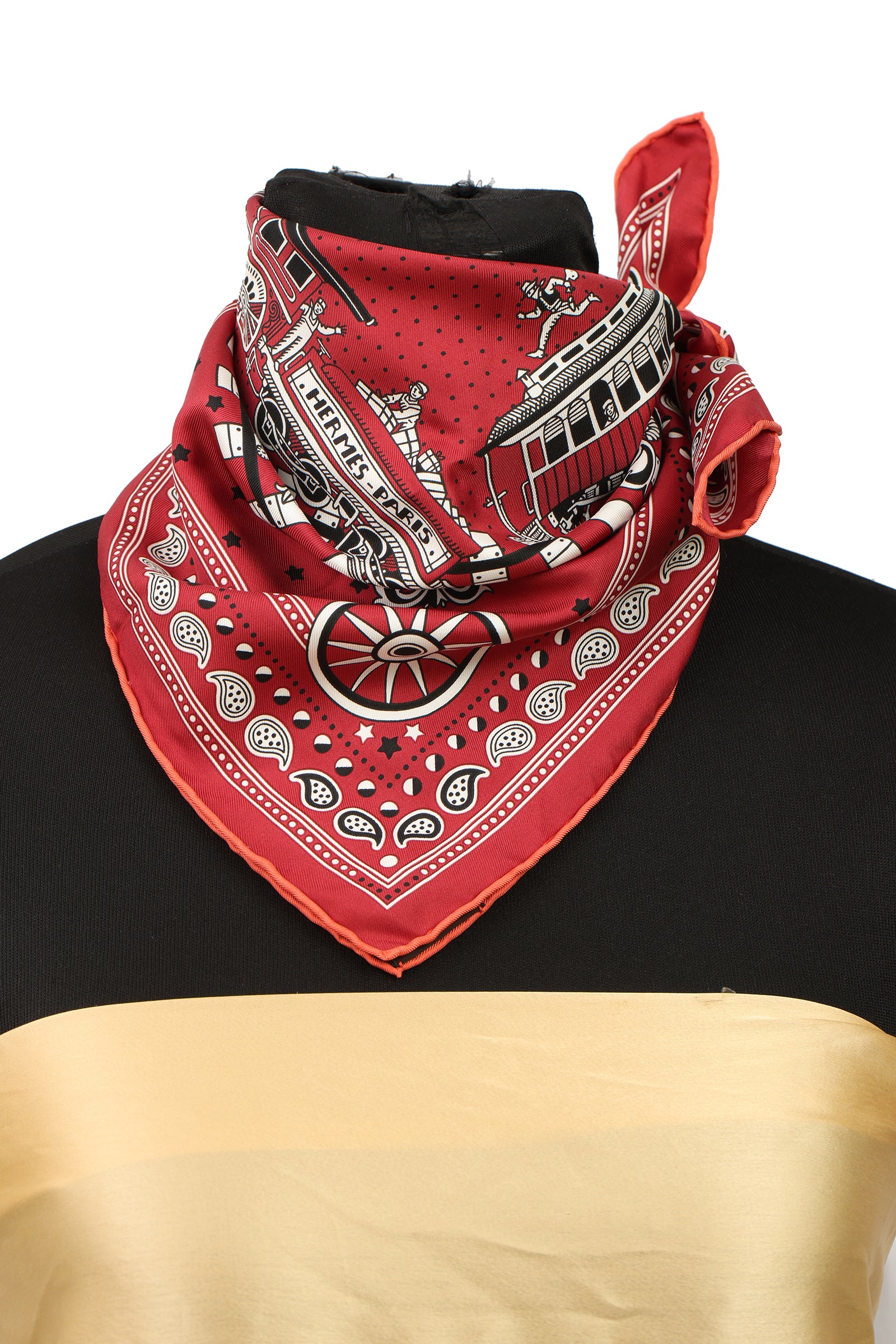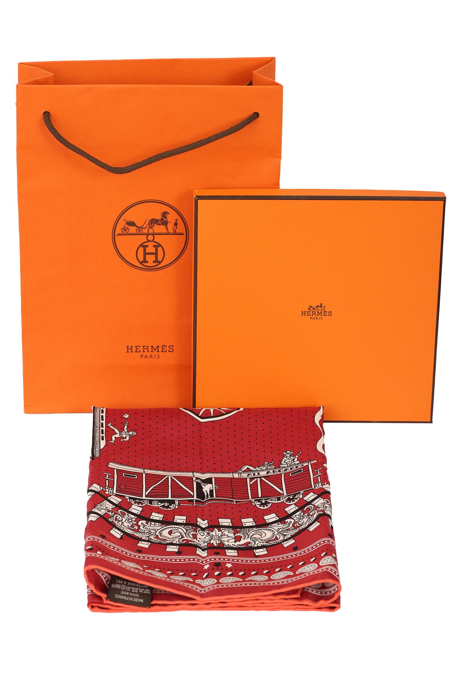HERMES ALL ABOARD RED BANDANA SILK SCARF comes in this Stunning Red color. It falls under our Never Been used Condition Category. No visible wear and tear or fading can be seen.
