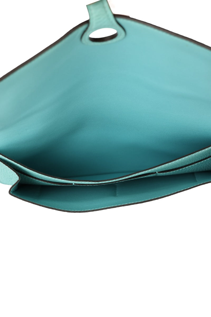 HERMES DOGON DUE BLUE CLUTCH comes in this blue color .It falls under our Never Been Used Condition Category. No visible wear and tear or fading can be seen