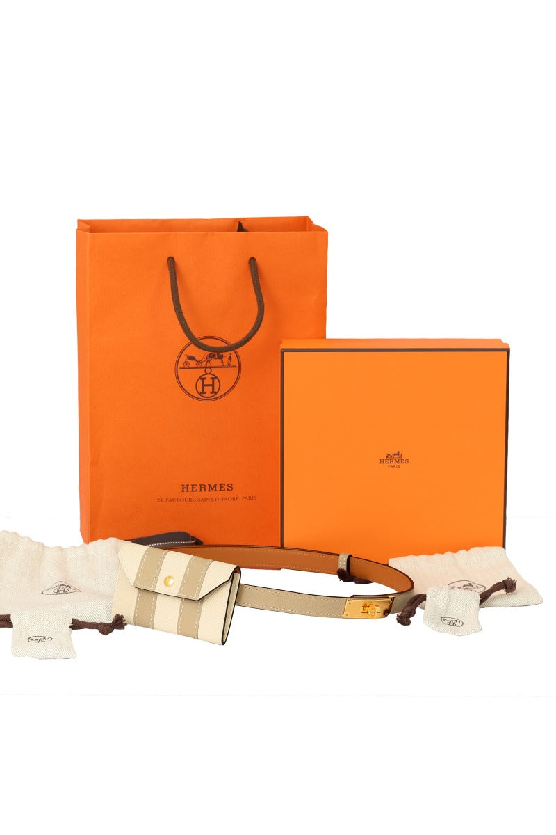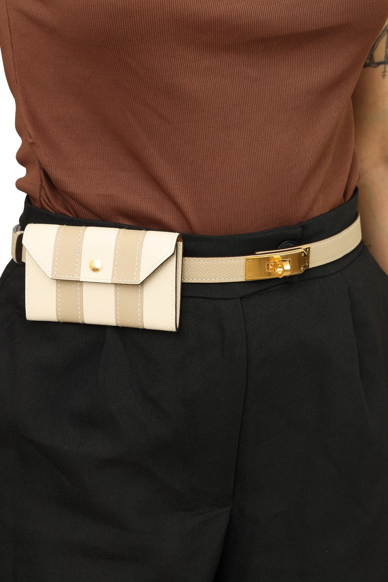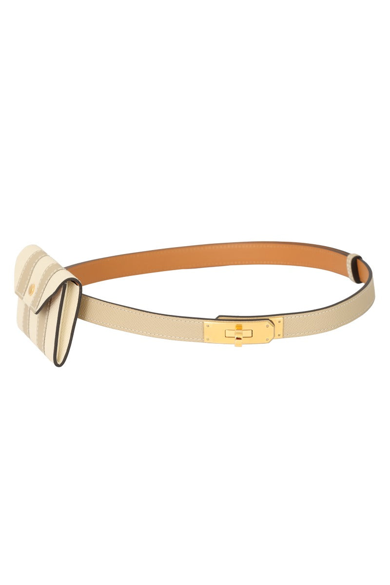 HERMES KELLY POCKET BAYADRE 18 BELT comes in this stunning Trench/Chalk color. It falls under our New With tags Condition Category. No visible wear and tear or fading can be seen.