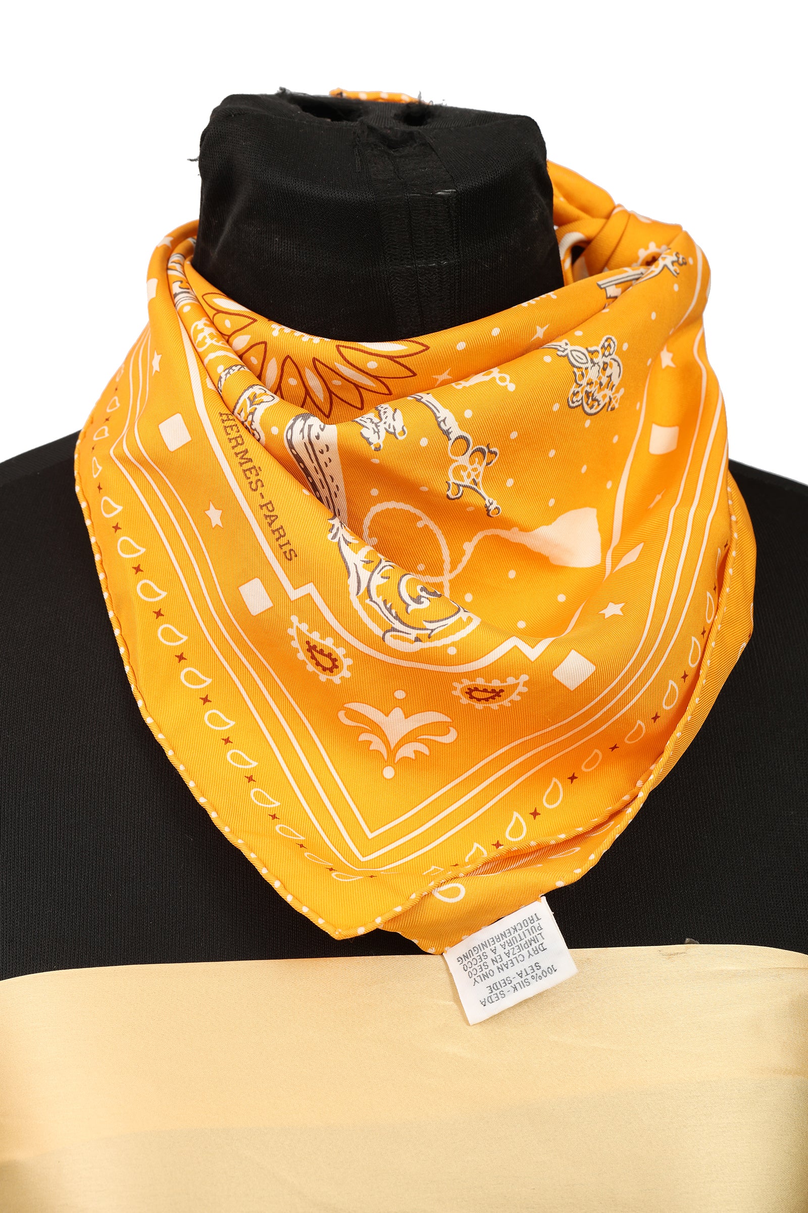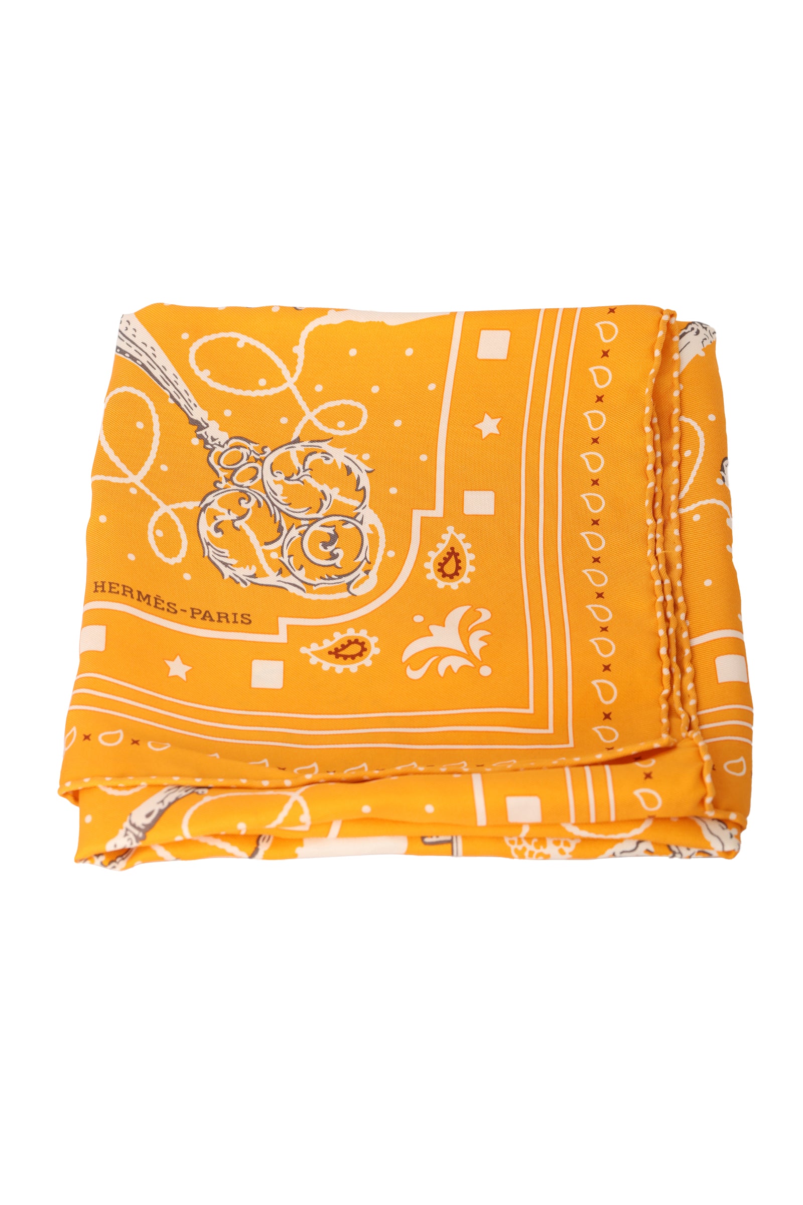 HERMES LES CLES YELLOW BANDANA SILK SCARF comes in this stunning Yellow color. It falls under our Never been used Condition Category.