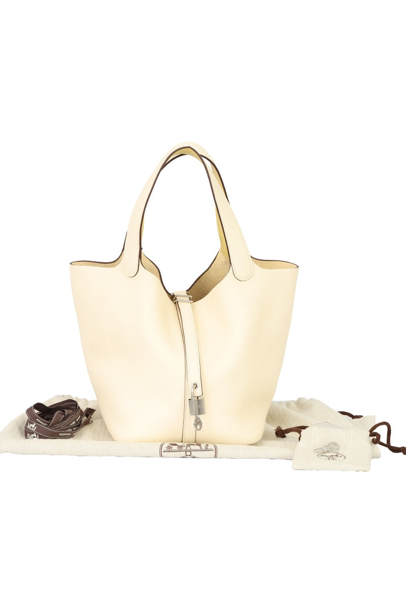 HERMES PICOTIN WHITE LOCK 22 HANDBAG comes in this Stunning Whitecolor .It falls under our Like New Condition Category.