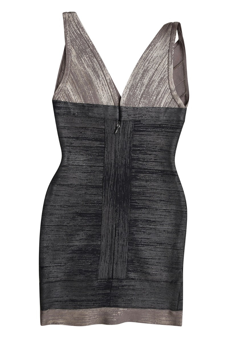 Herve Leger Metallic Bandage Dress comes in this Stunning Metallic Black/Silver color. It falls under our Pristine Condition Category. No visible wear and tear or fading can be seen