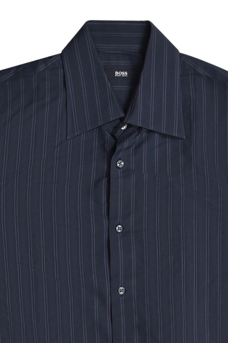 Hugo Boss Black Striped Shirt comes in this Stunning Black color. It falls under our pristine Condition Category. No visible wear and tear or fading can be seen