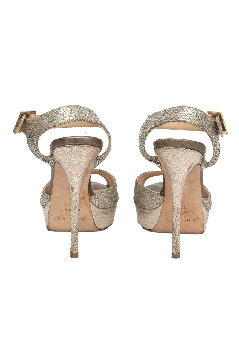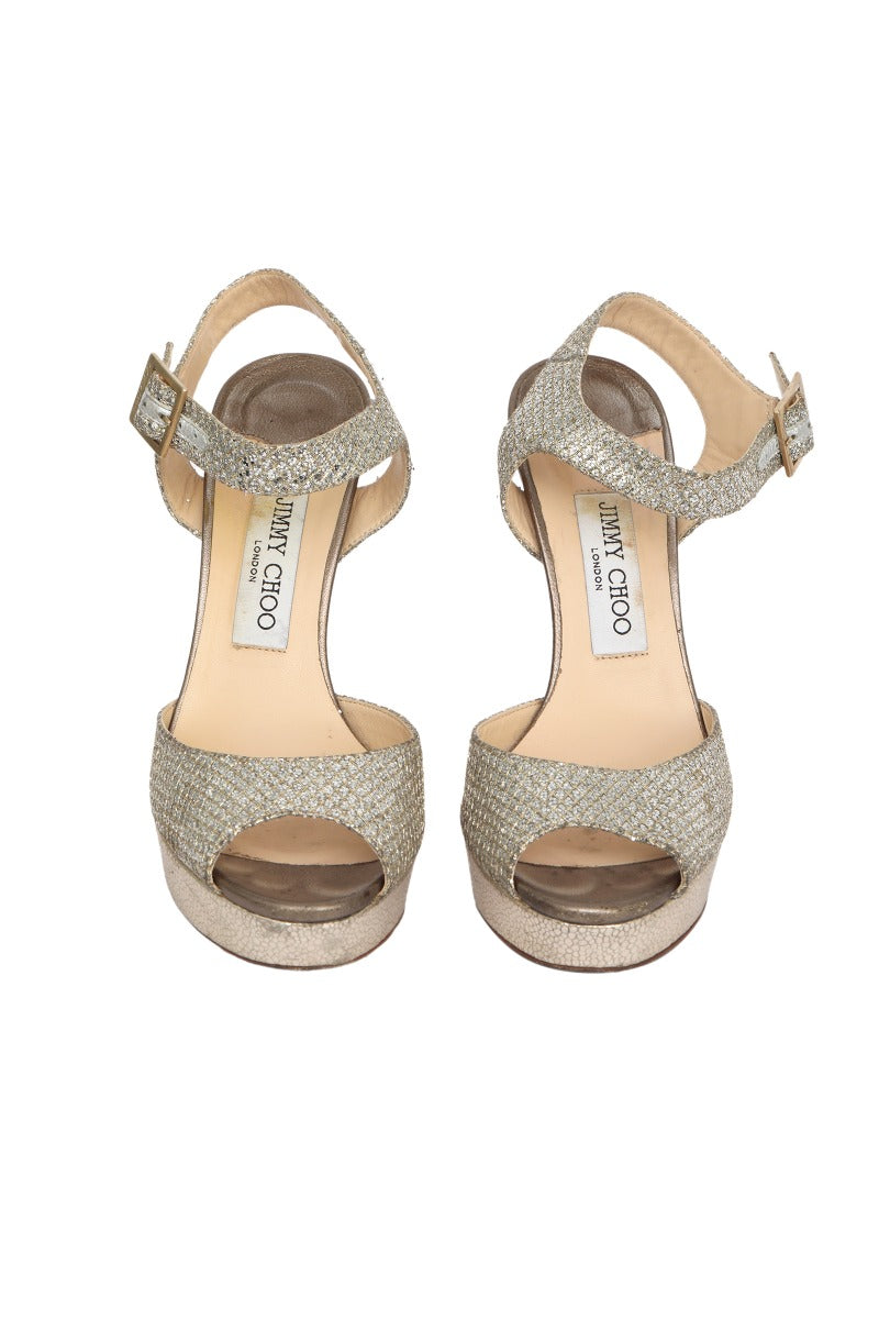 Jimmy Choo EU 38.5 Silver Glitter Linda Ankle Strap Heels comesin this stunning Silver color. It falls under our Pristine Condition Category. No visible wear and tear or fading can be seen.
