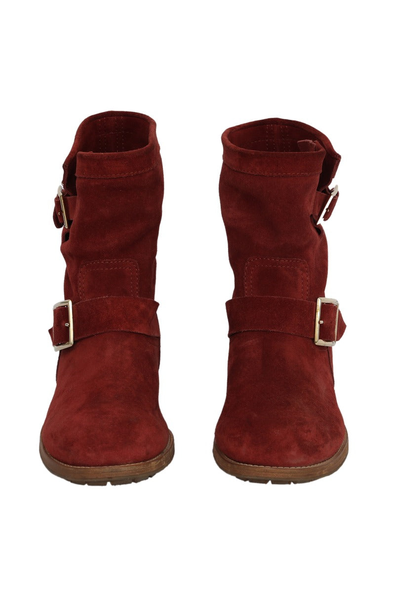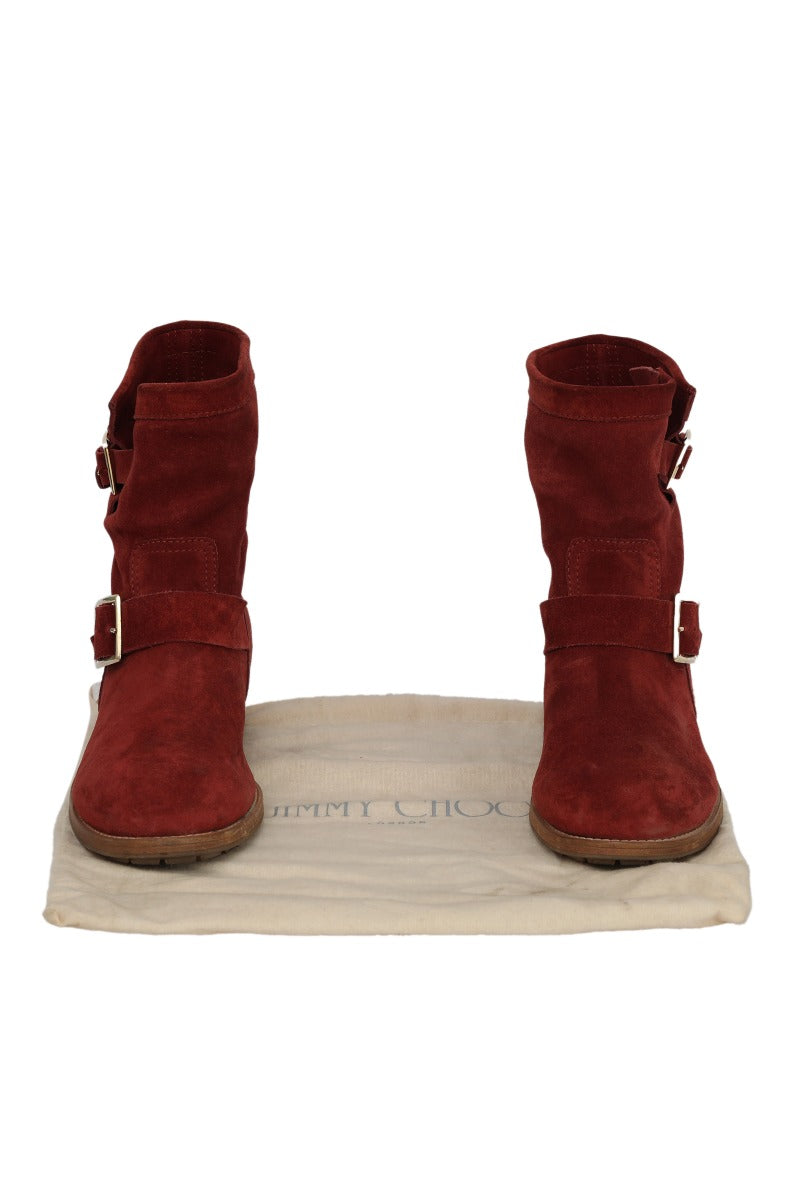 Jimmy Choo EU 40 Red Suede Boots comes in this stunning Red color. It falls under our Pristine Condition Category. No visible wear and tear or fading can be seen.