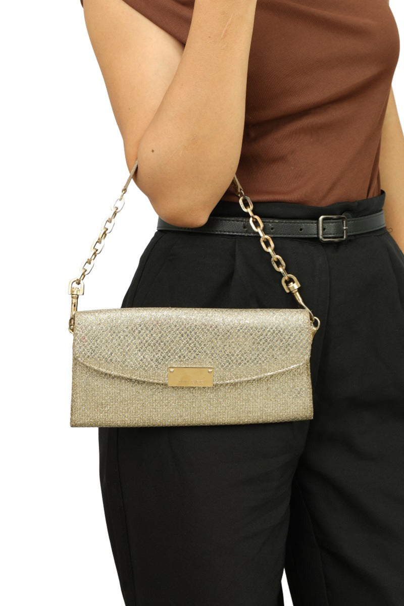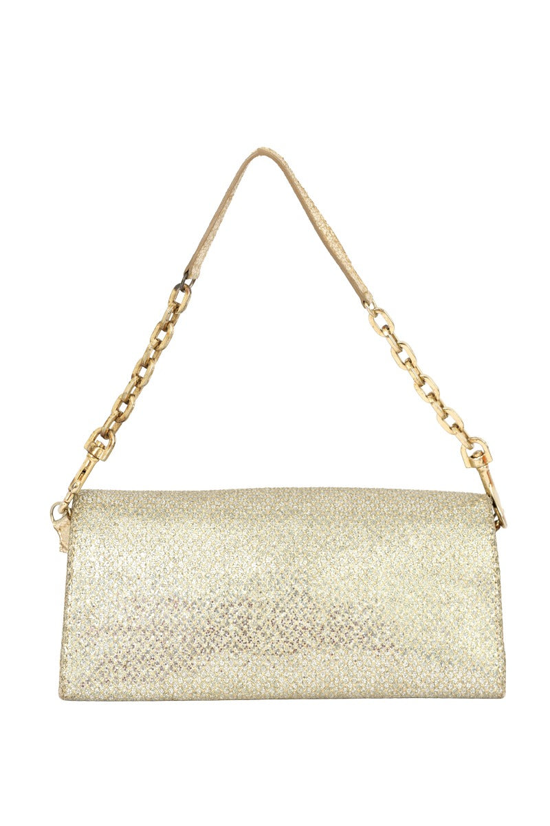 JIMMY CHOO GOLD GLITTER RIANE CLUTCH BAG comes in this Stunning Gold color .It falls under our Pristine Condition Category.