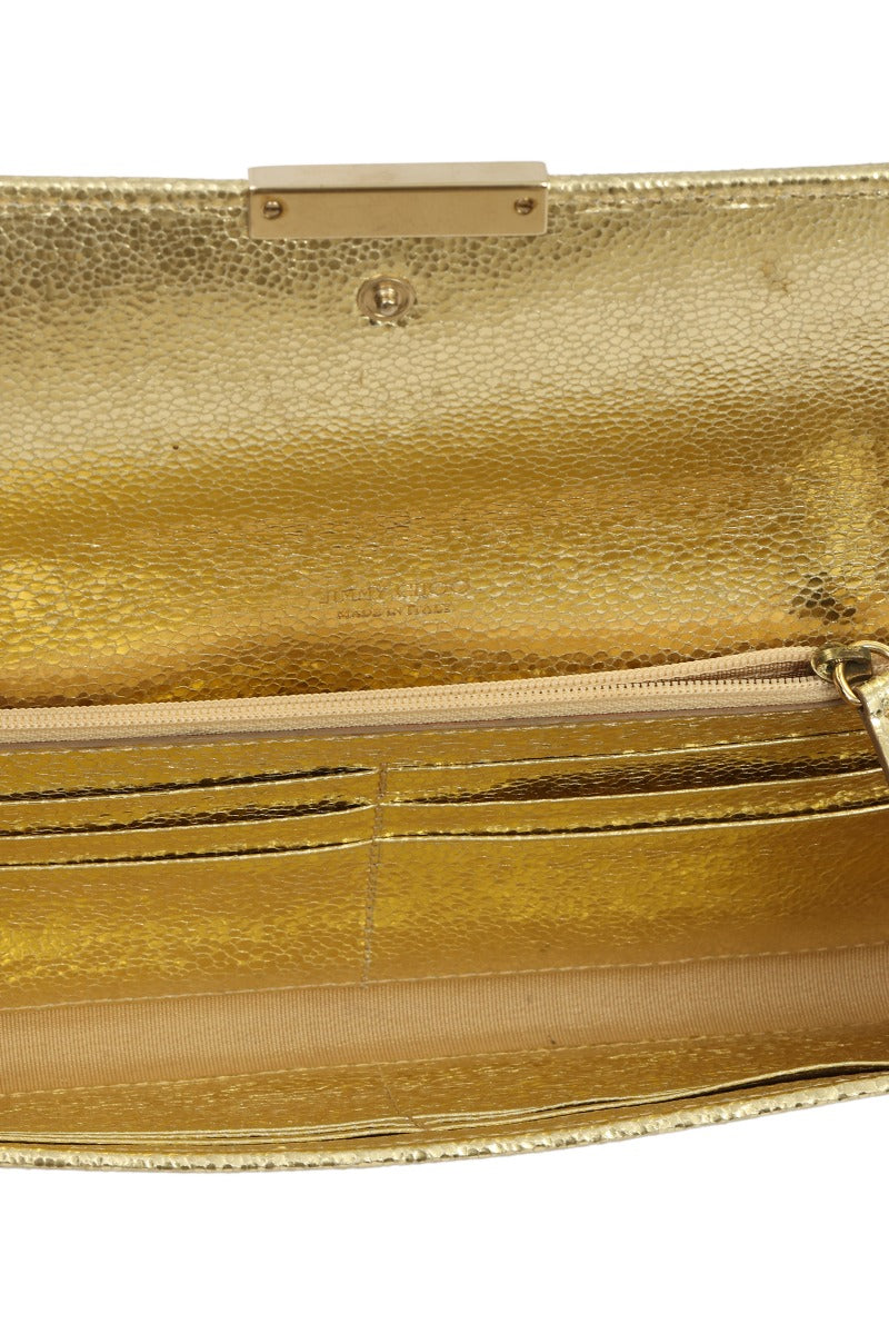 JIMMY CHOO GOLDEN GLITTER CLUTCH comes in this Stunning Gold color .It falls under our Pristine Condition Category. No visible wear and tear or fading can be seen.