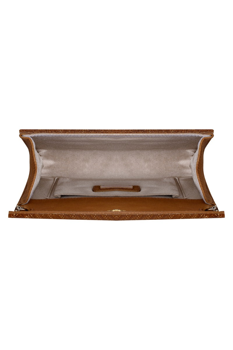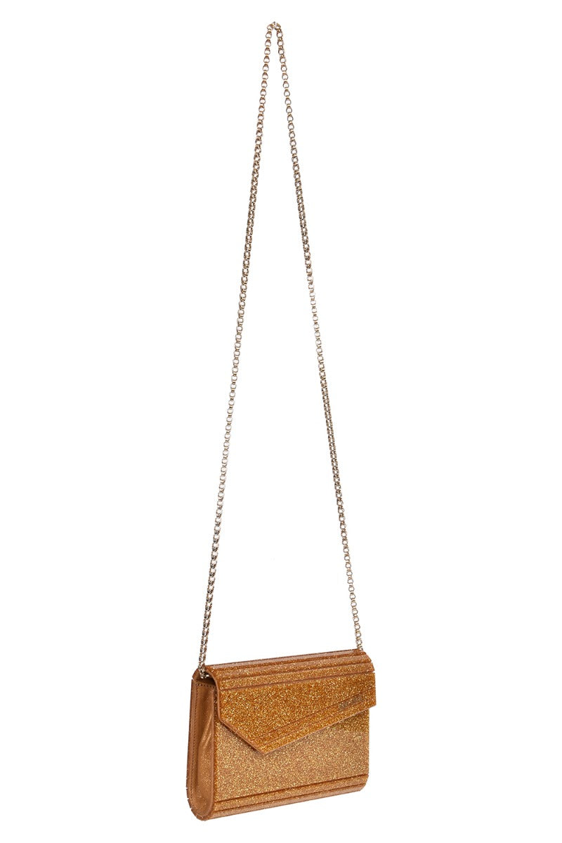Jimmy Choo Golden Shimmer Candy Clutchcomes in this Stunning Golden color .It falls under our Pristine Condition Category. No visible wear and tear or fading can be seen.