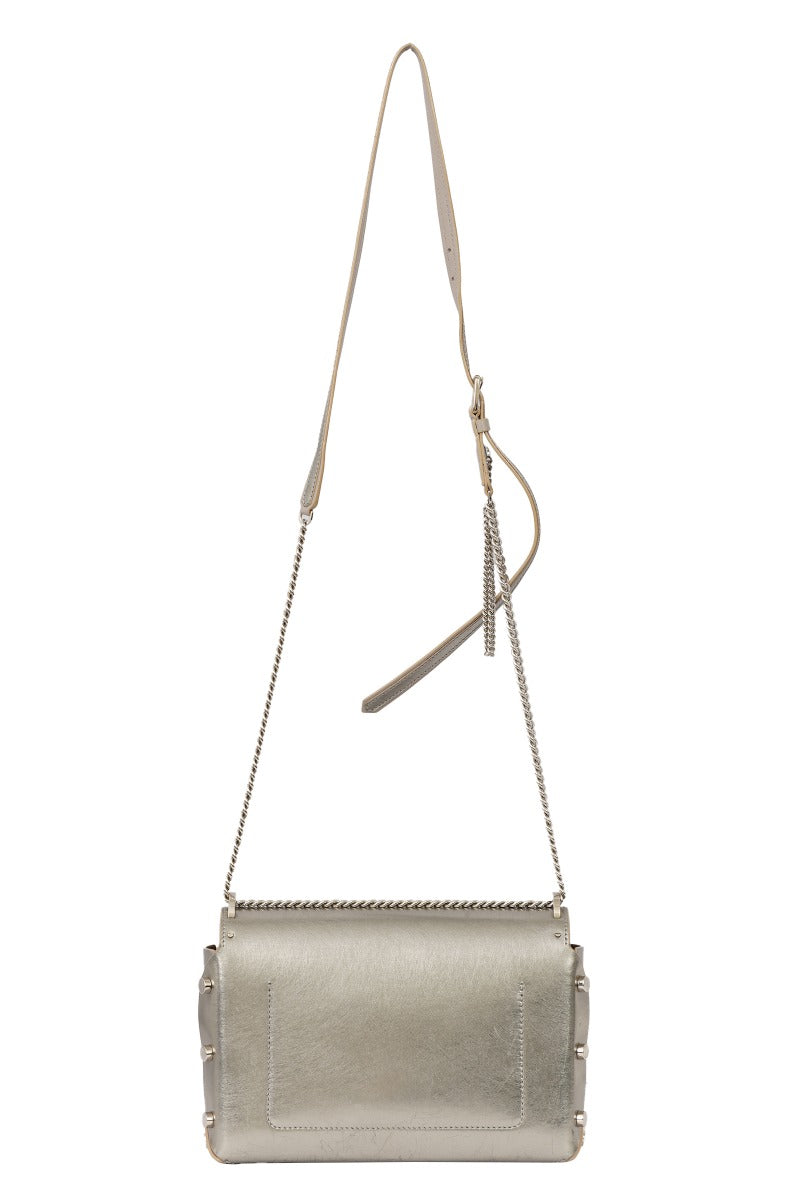 JIMMY CHOO ROCKET PETITE CHAIN SHOULDER BAG comes in this Stunning Silver color .It falls under our Pristine Condition Category.