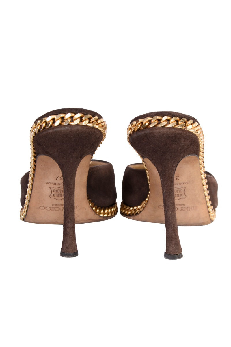 JIMMY CHOO SUEDE PEEPTOES comes in this stunning Brown color. It falls under our Pristine Condition Category. No visible wear and tear or fading can be seen.