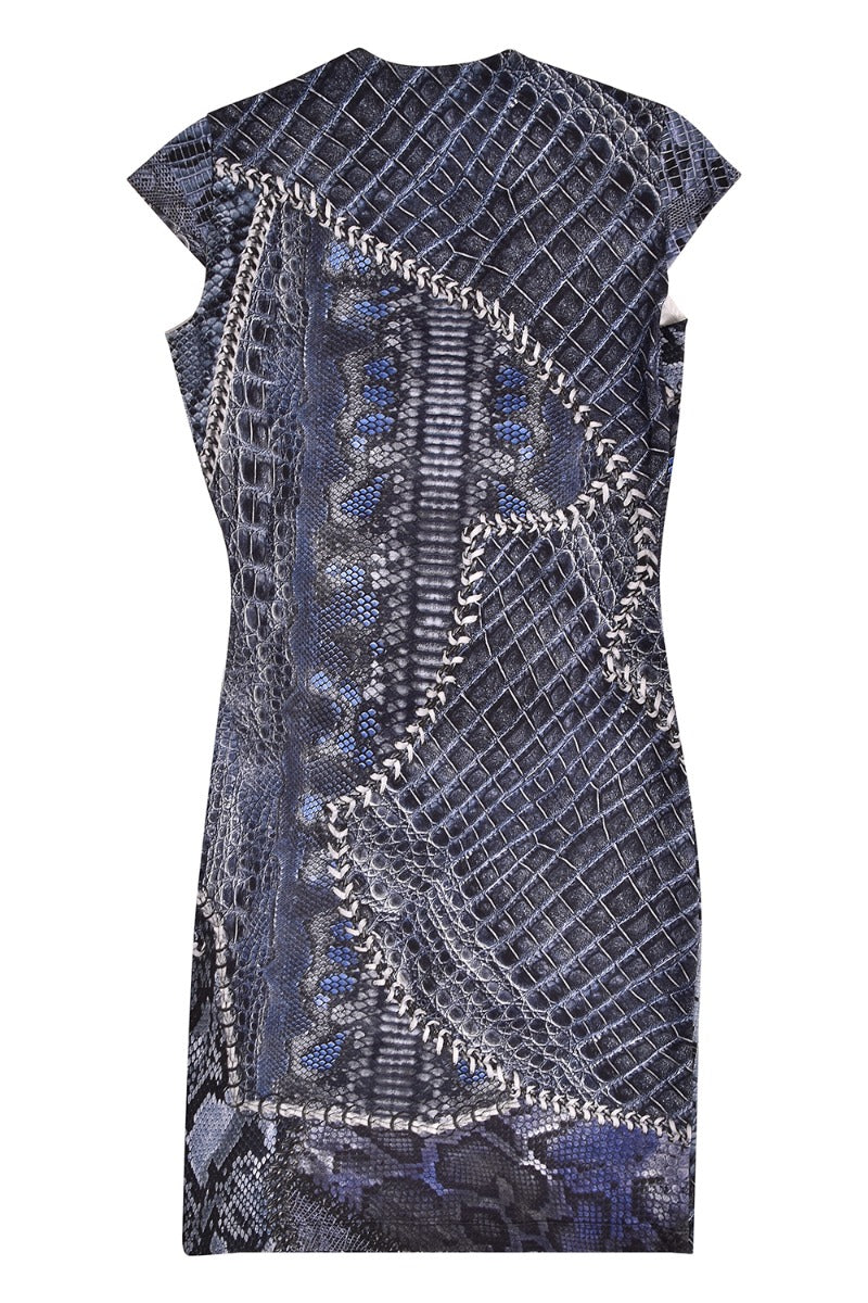 JUST CAVALLI NAVY PYTHON EFFECT DRESSin this Stunning Blue color. It falls under our Pristine Condition Category. No visible wear and tear or fading can be seen.