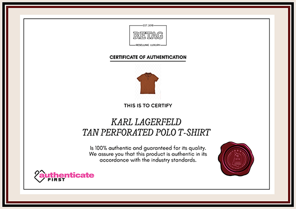 Karl Lagerfeld Tan Perforated Polo T-shirtcomes in this Stunning Tan color. It falls under our Pristine Condition Category.
