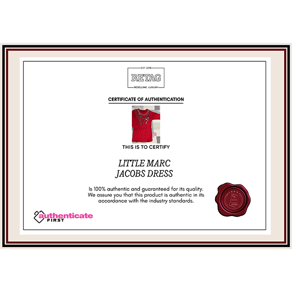 LITTLE MARC JACOBS DRESS comes in this stunning Red Color. The dress falls in our Good Condition Category. No visible wear & tear can be seen.
