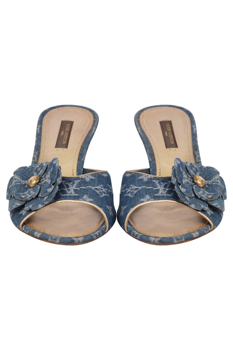 Louis Vuitton Blue Monogram Denim Flower Detail Sandals comes in this stunning Blue color. It falls under our Pristine Condition Category. No visible wear and tear or fading can be seen