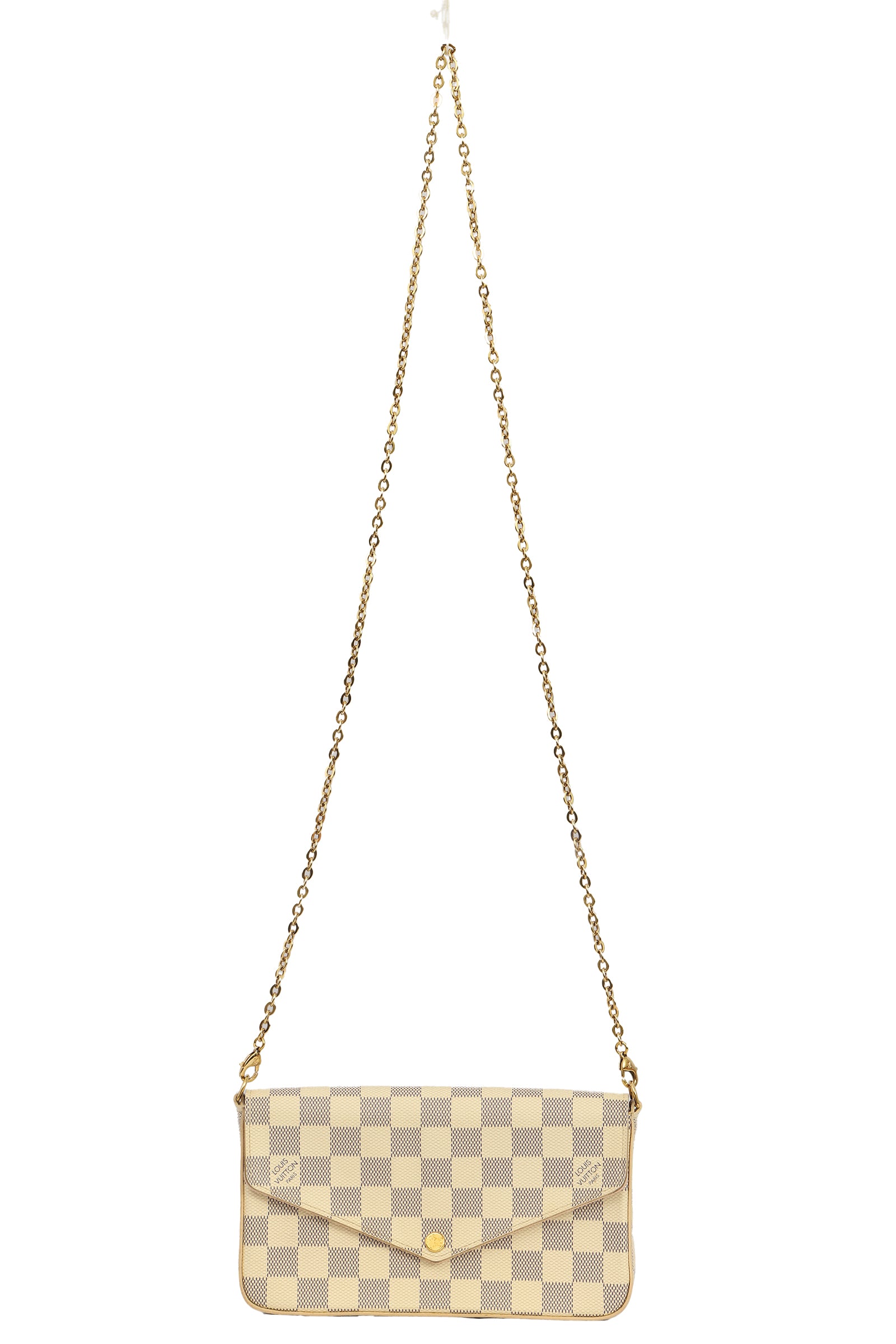 Louis Vuitton Damier Azur Felicie Pochette comes in this stunning Azur color. It falls under our Never Been Used Condition Category.