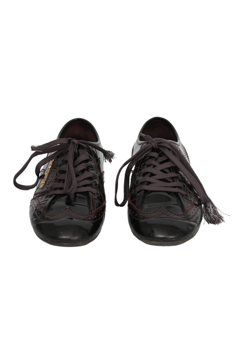 Louis Vuitton EU 37 Patent Leather Lyrics Brogue Sneakers comes in this stunning Amarante color. It falls under our Pristine Condition Category. No visible wear and tear or fading can be seen