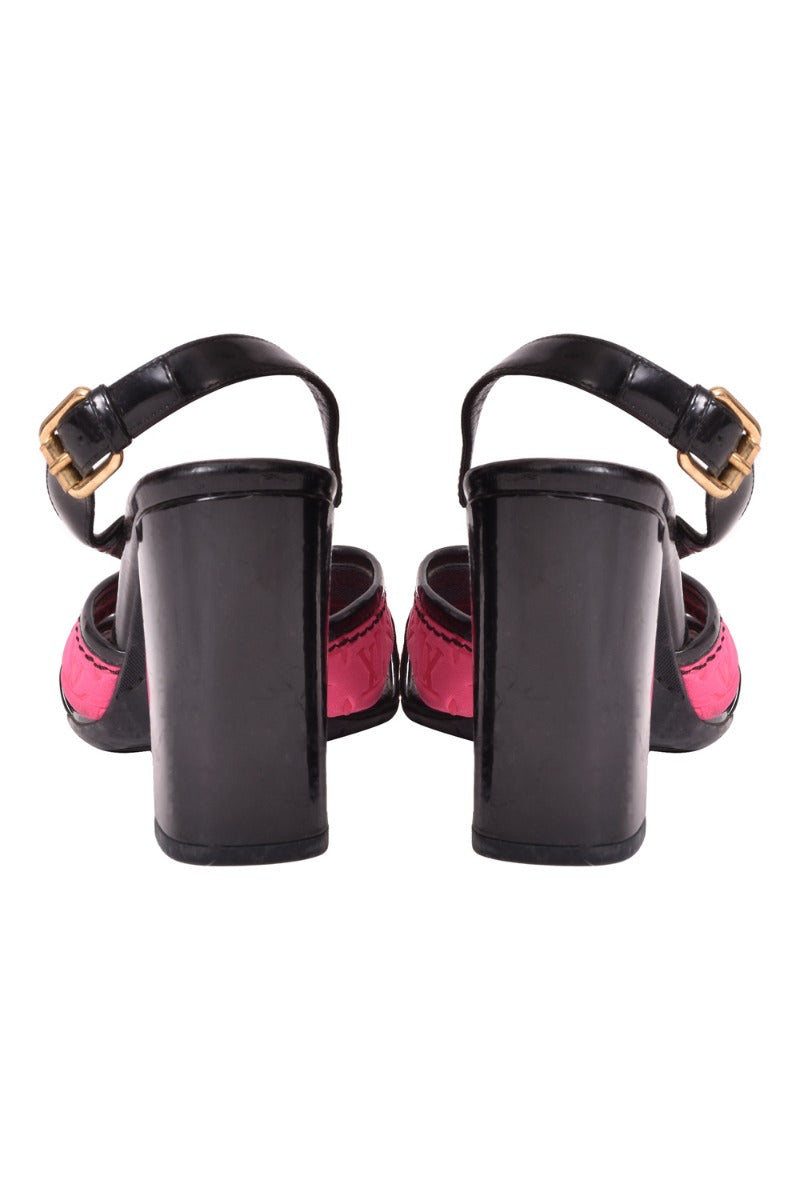 Louis Vuitton Leather Block Heels comes in this stunning Pink & Black color. It falls under our Pristine Condition Category. No visible wear and tear or fading can be seen