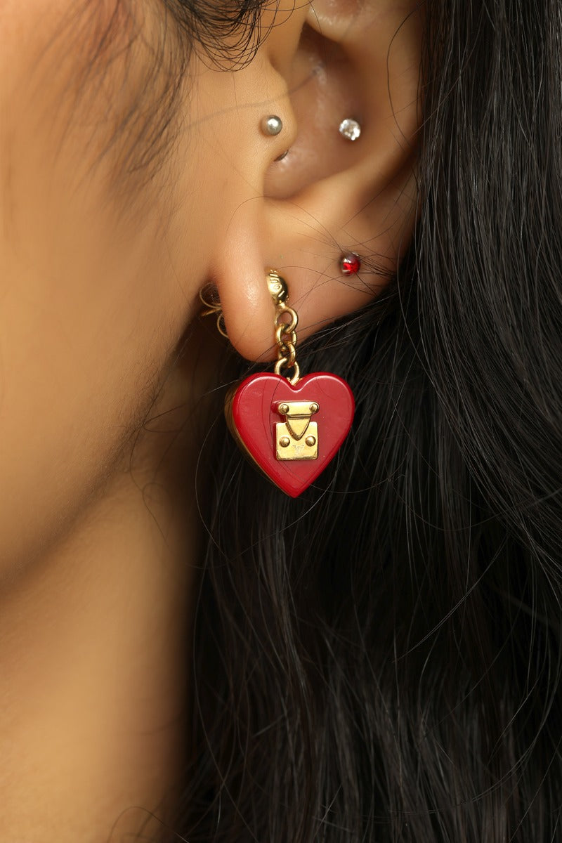 LOUIS VUITTON LOCK ME HEART EARRINGScomes in this stunning Red Color. It falls under our Pristine Condition Category