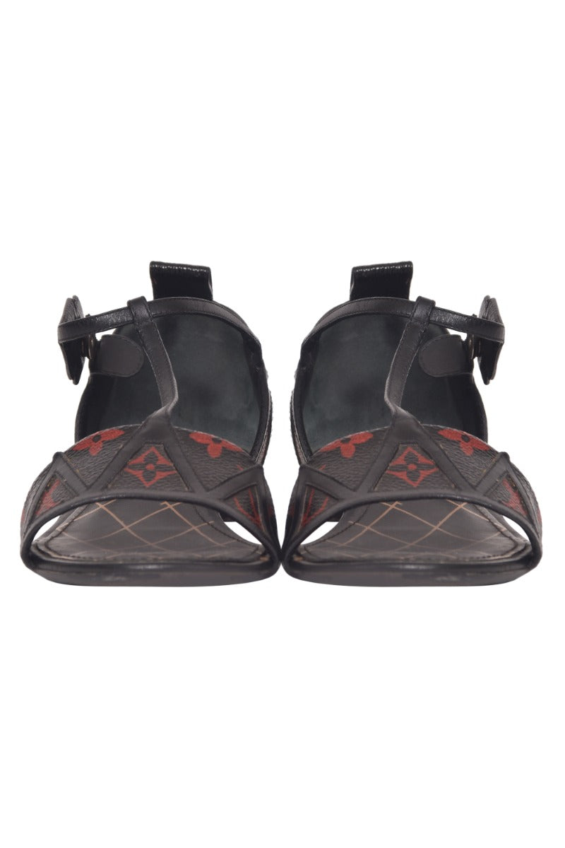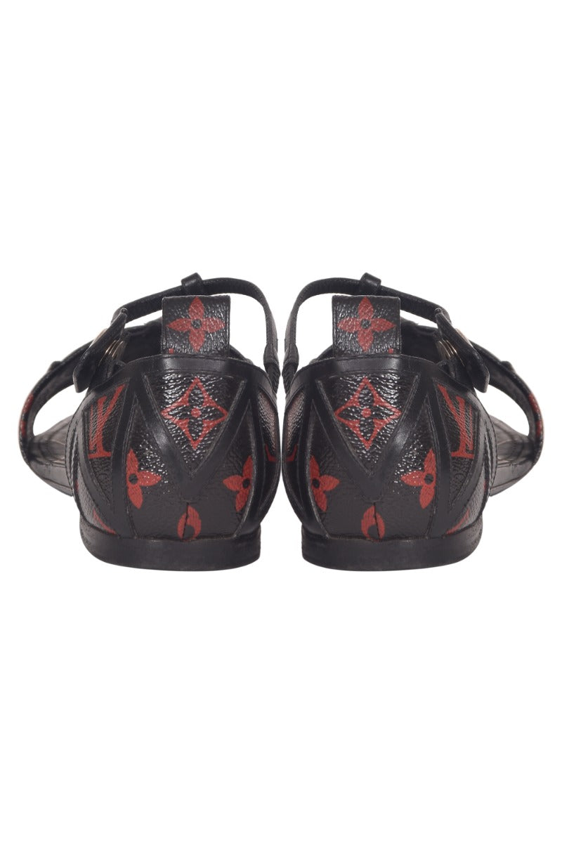 Louis Vuitton Monogram Leather Sandals comes in this stunning Black color. It falls under our Like New Condition Category. No visible wear and tear or fading can be seen.