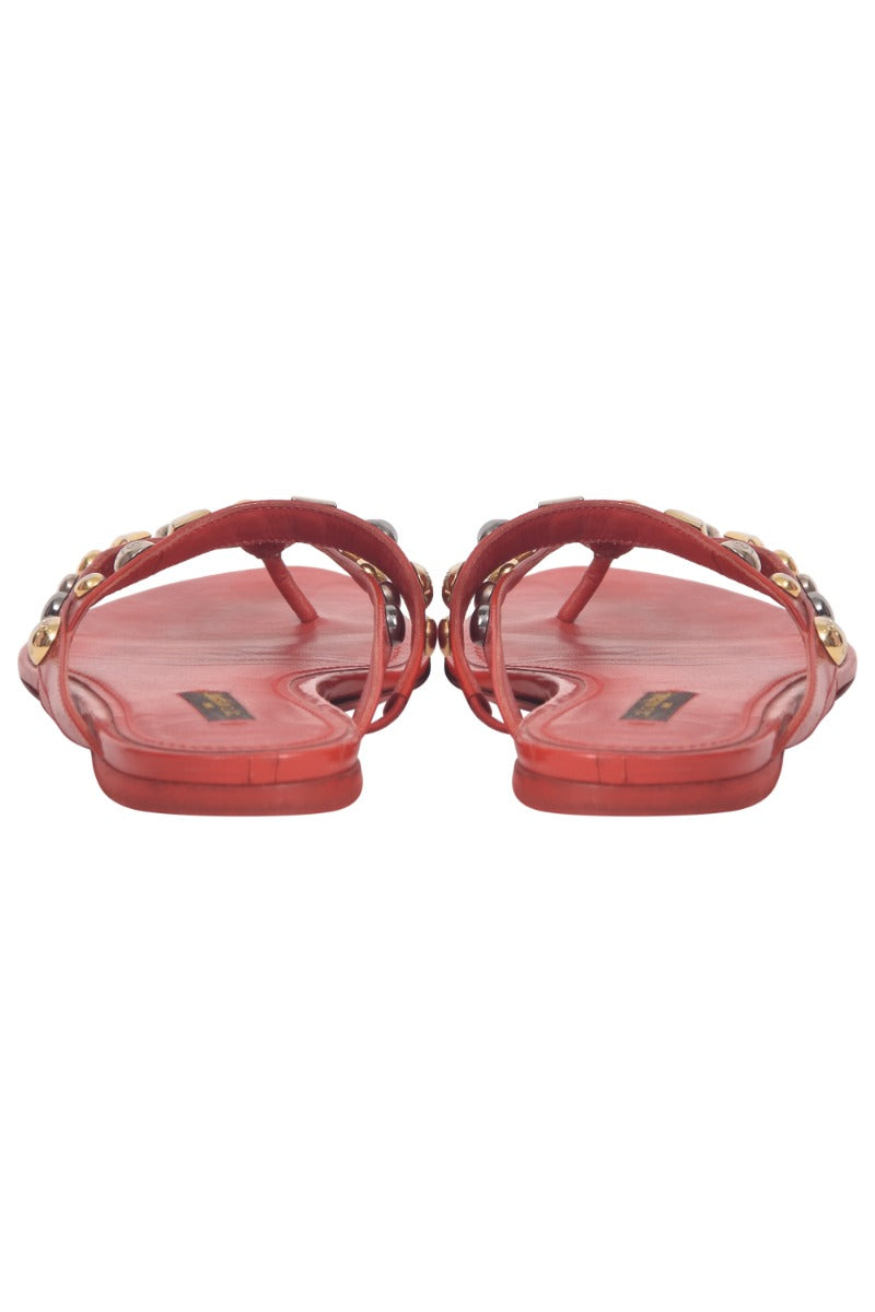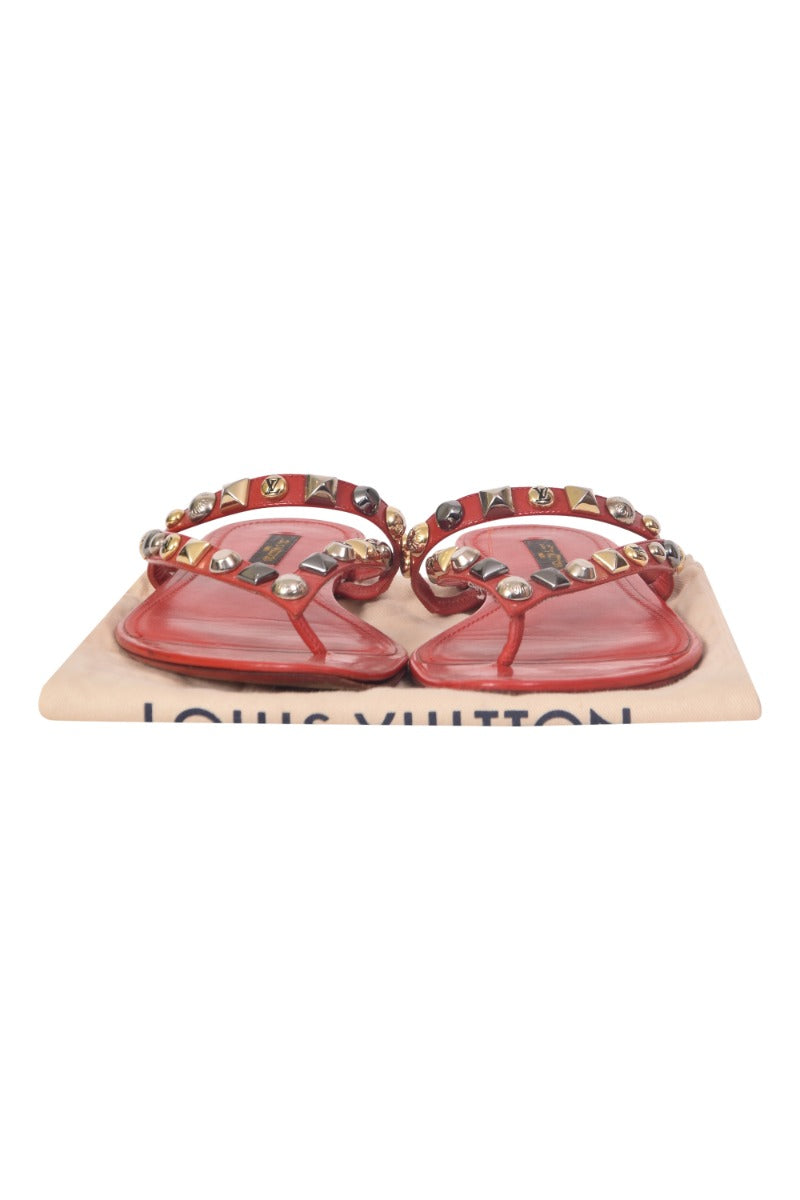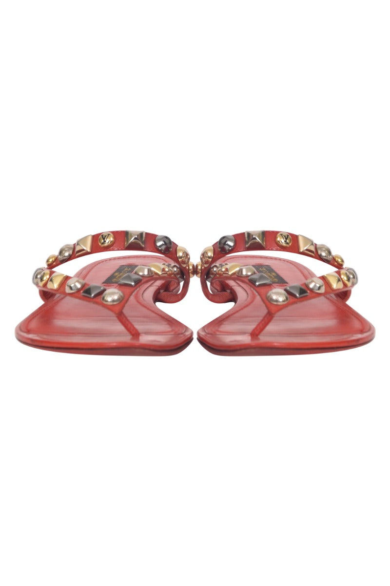Louis Vuitton Patent Leather Studded Flats comes in this Redcolour. It falls under our Pristine Condition Category. No visible wear and tear or fading can be seen