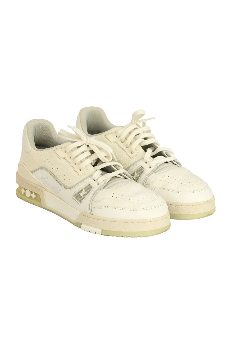 LOUIS VUITTON SIZE 6.5 WHITE LEATHER TRAINER SNEAKERS comes in this stunning white color. It falls under our Pristine Condition Category. No visible wear and tear or fading can be seen.