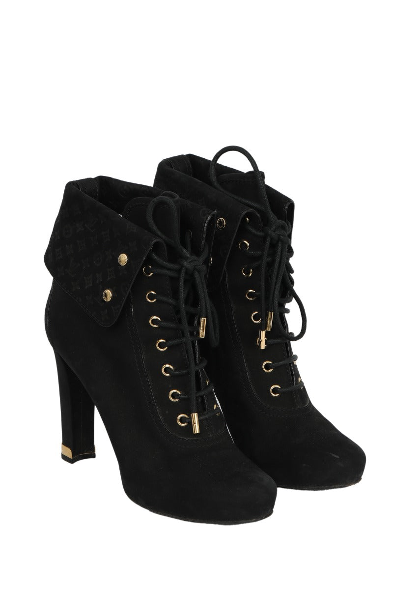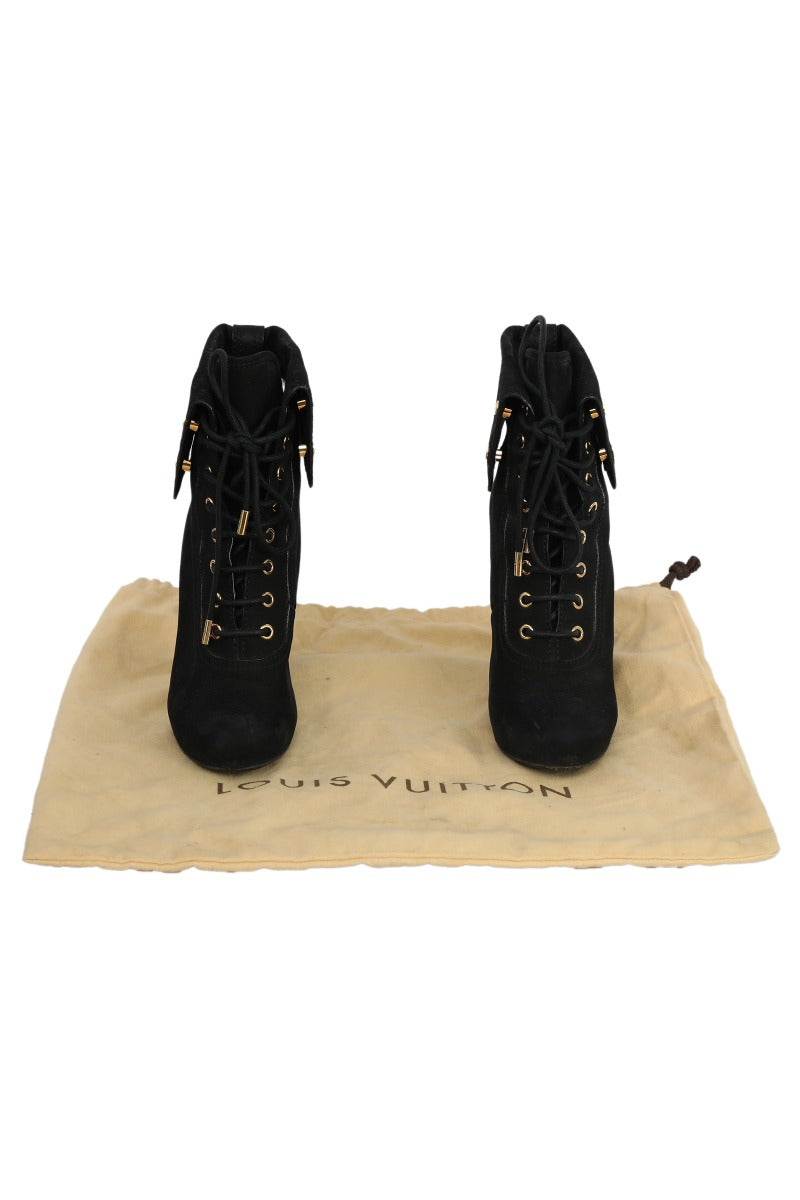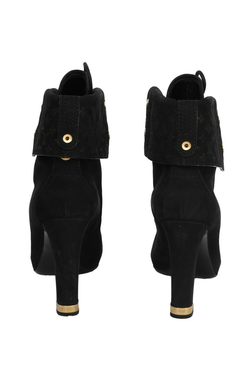 Louis Vuitton Size 40 Starlet Monogram Embossed Nubuck Ankle Boots comesin this stunning Black color. It falls under our Pristine Condition Category. No visible wear and tear or fading can be seen.