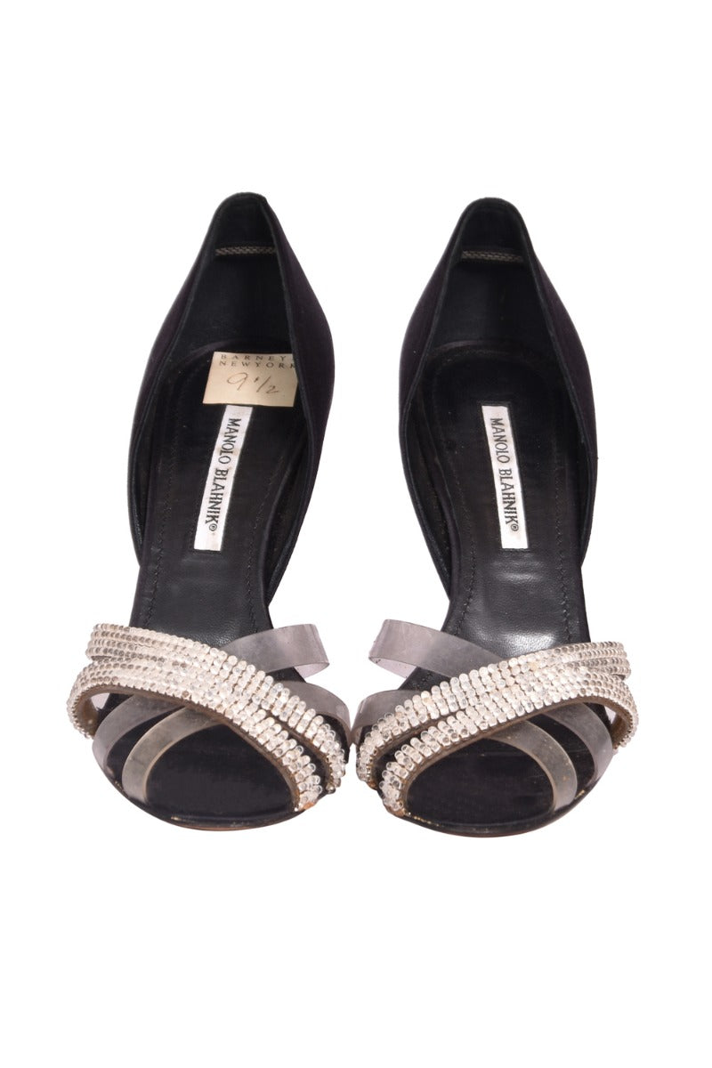 Manolo Blahnik Crystal studded Heels comes in this stunning Black color. It falls under our Pristine Condition Category. No visible wear and tear or fading can be seen.