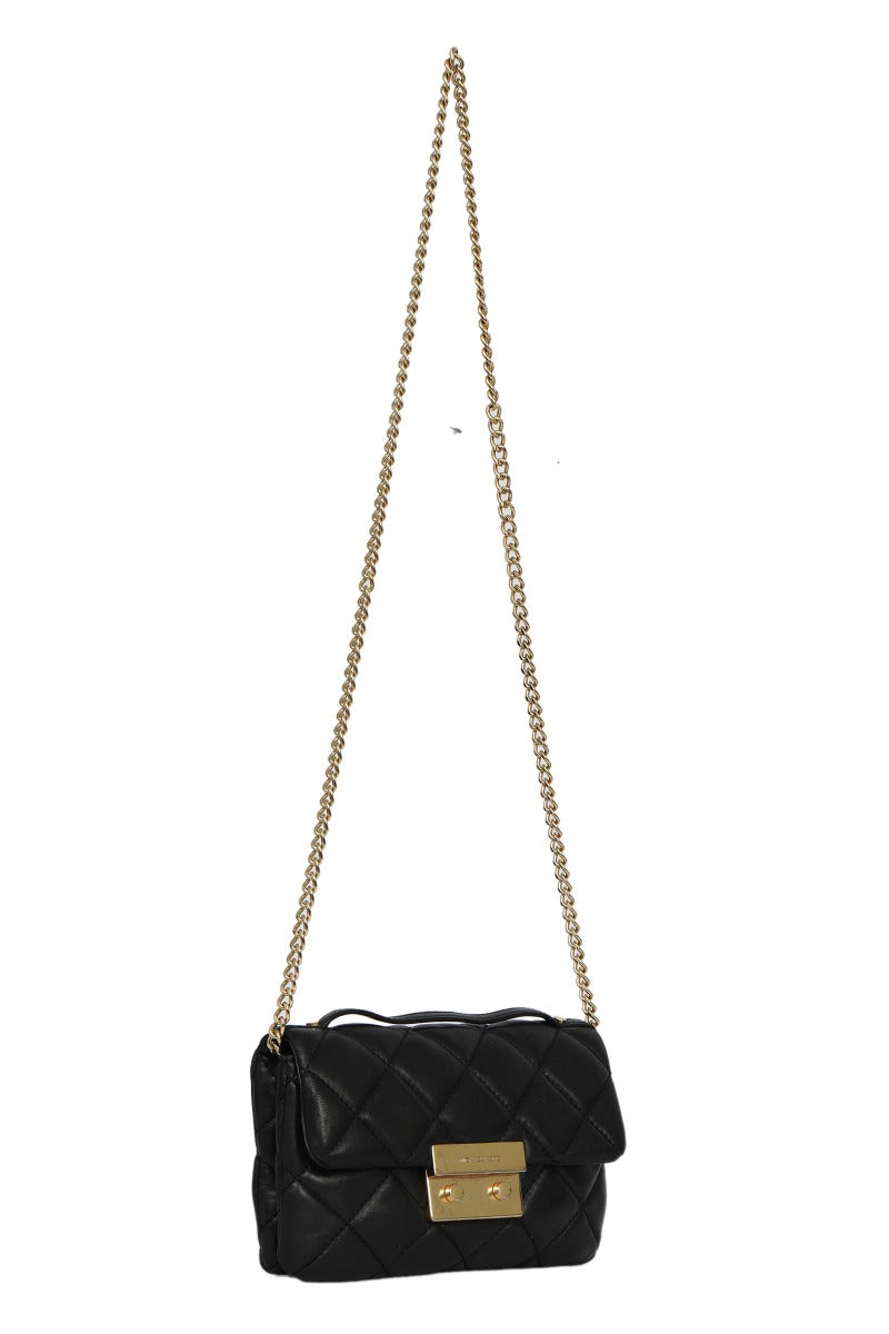 Michael Kors Small Sloan Black Quilted Leather Sling Bag comes in this Stunning Black color .It falls under our Pristine Condition Category. No visible wear and tear or fading can be seen