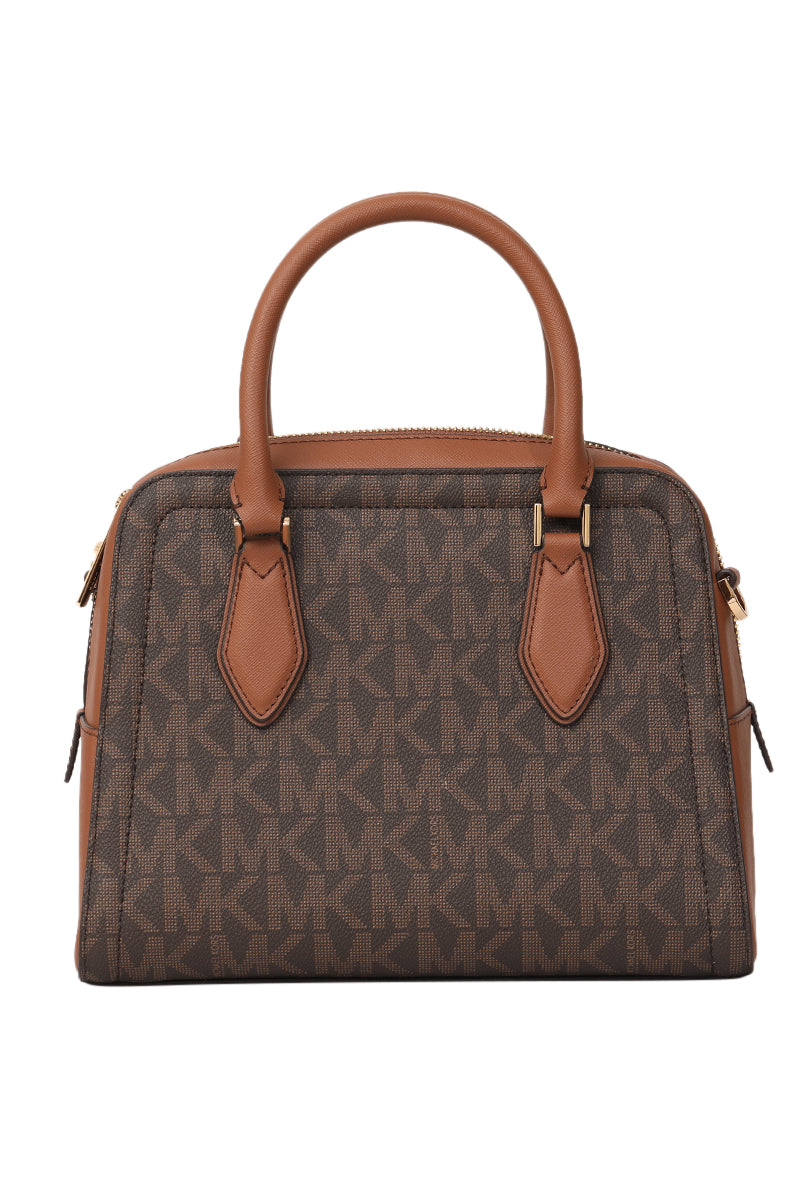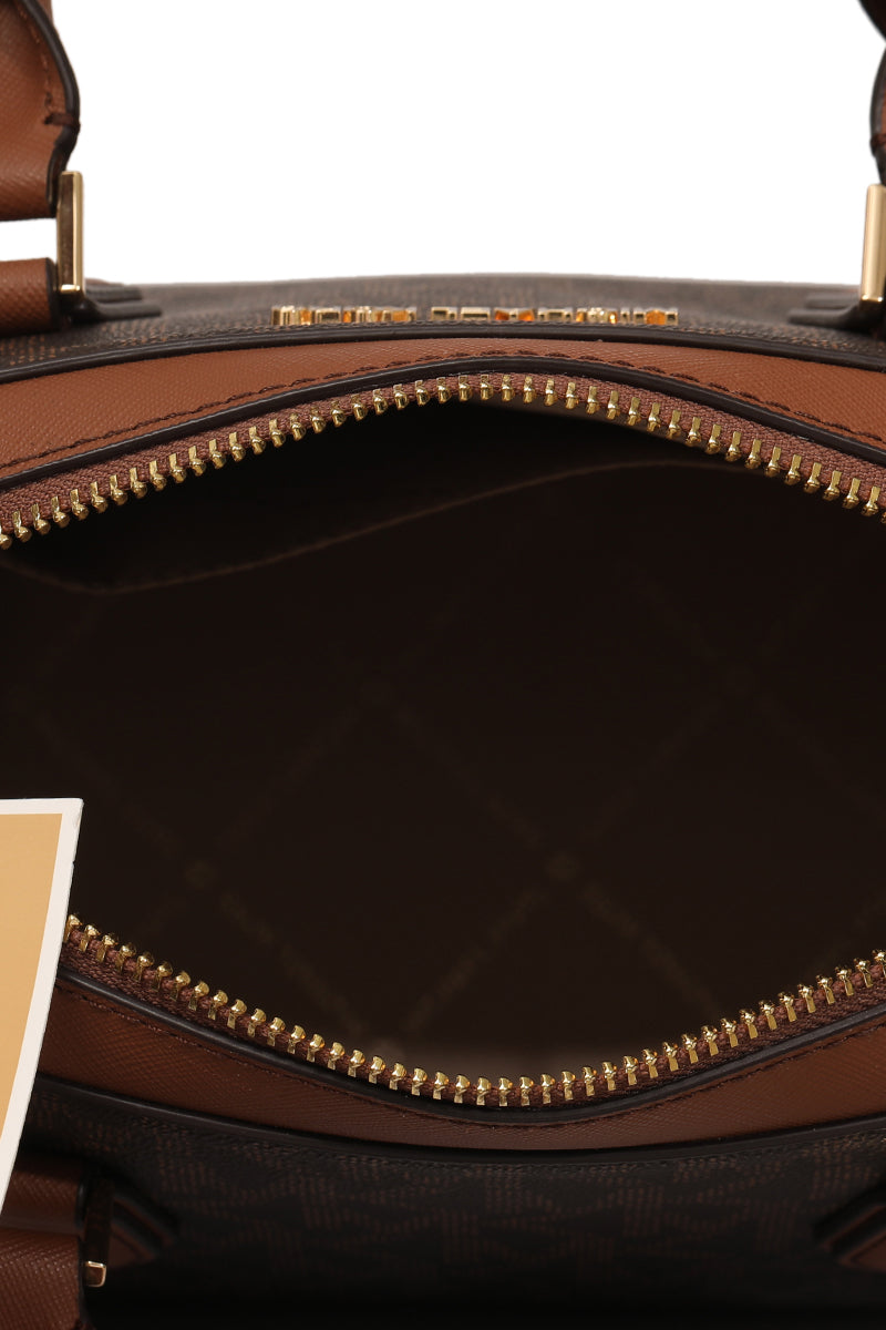 MICHAEL KORS AYDEN MEDIUM LOGO AND FAUX LEATHER SATCHEL BAGcomes in this Stunning Browncolor .It falls under our Never Been Used Condition Category. No visible wear and tear or fading can be seen.