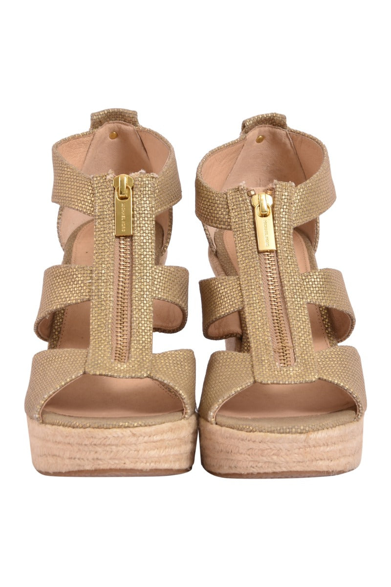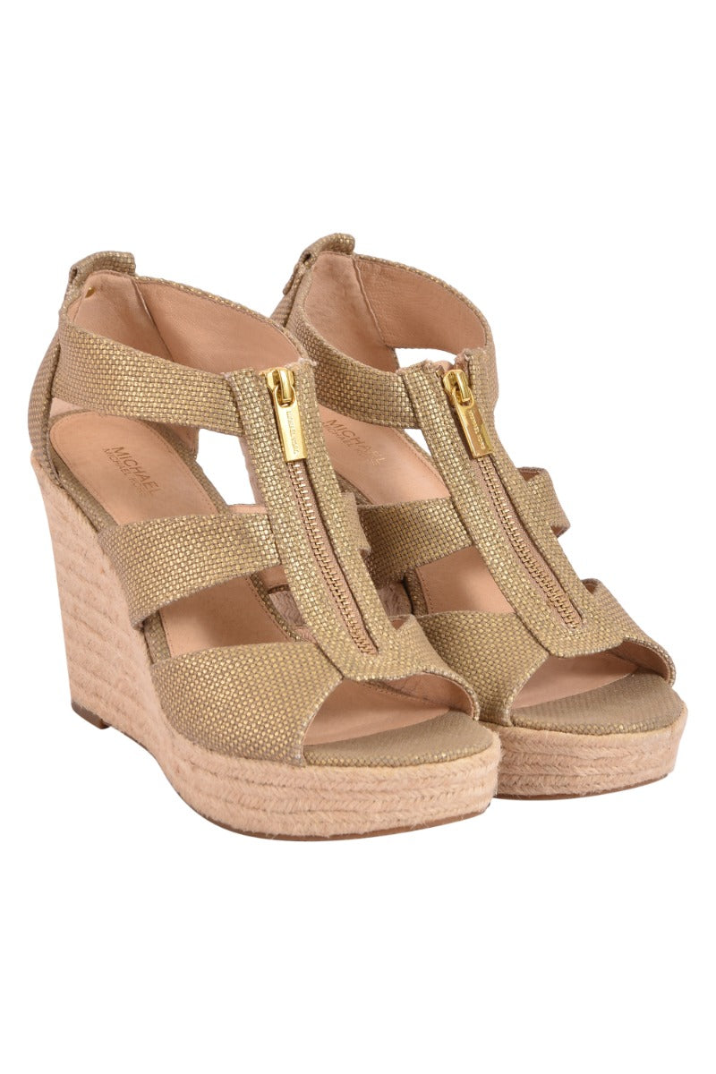 Michael Kors Berkley Espadrille Wedges comes in this stunning Beige color. It falls under our Pristine Condition Category. No visible wear and tear or fading can be seen.