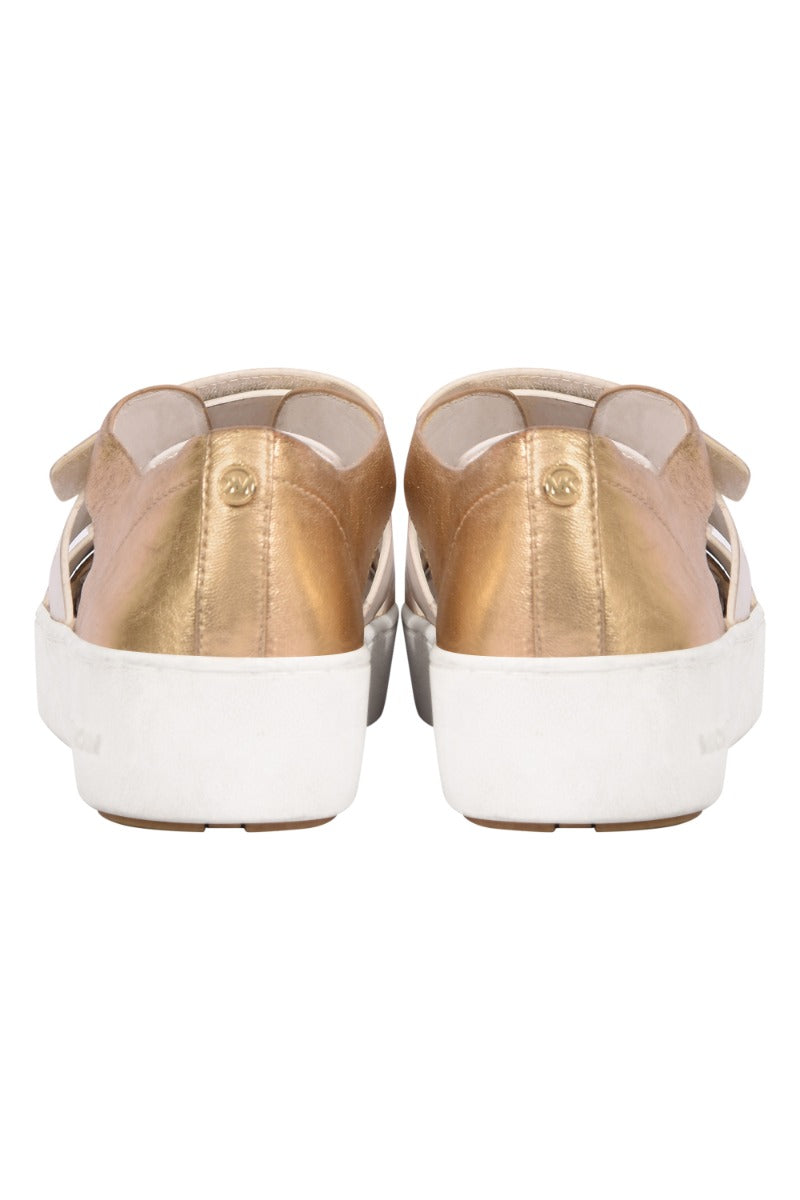 Michael Kors Gold/White Open Side Leather Sneakers comes in this stunning Golden color. It falls under our Pristine Condition Category. No visible wear and tear or fading can be seen