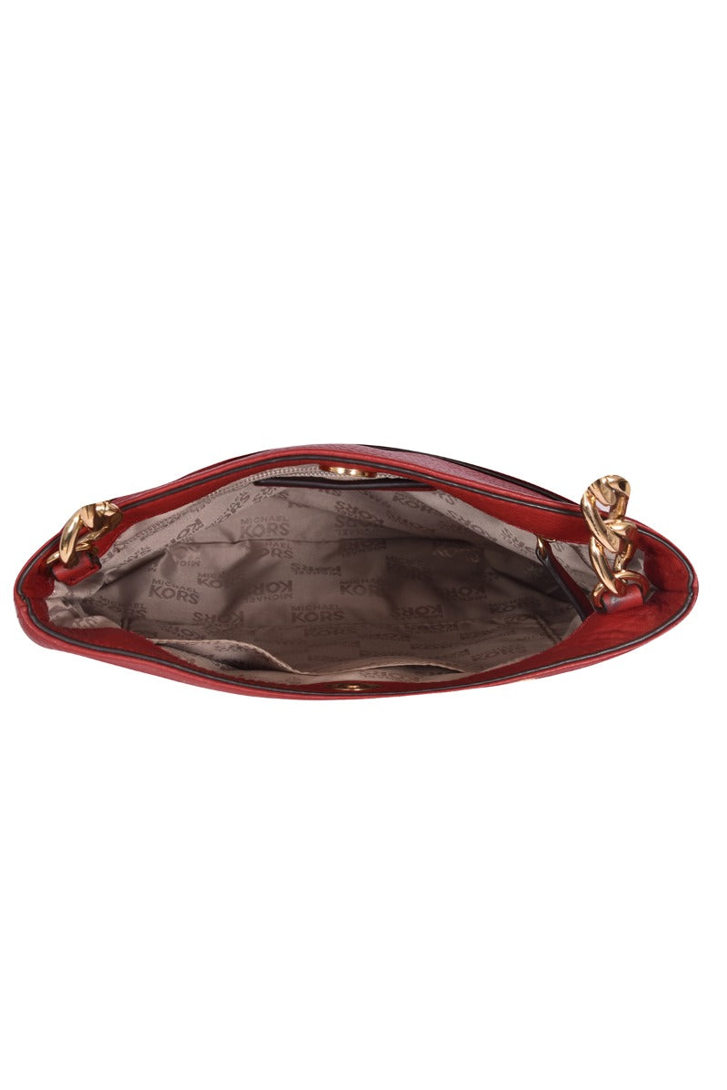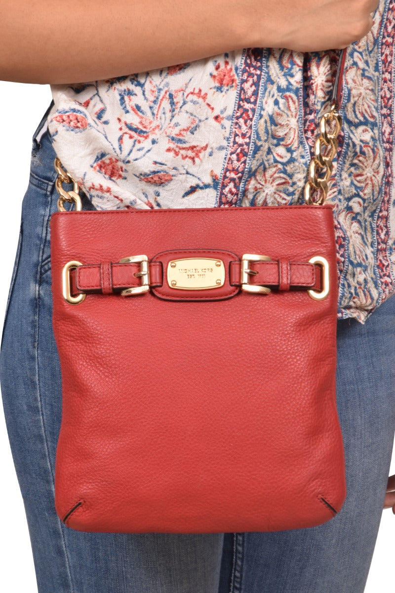 Michael Kors Hamilton Crossbody Bag comes in this Stunning Redcolor .It falls under our Pristine Condition Category. No visible wear and tear or fading can be seen.